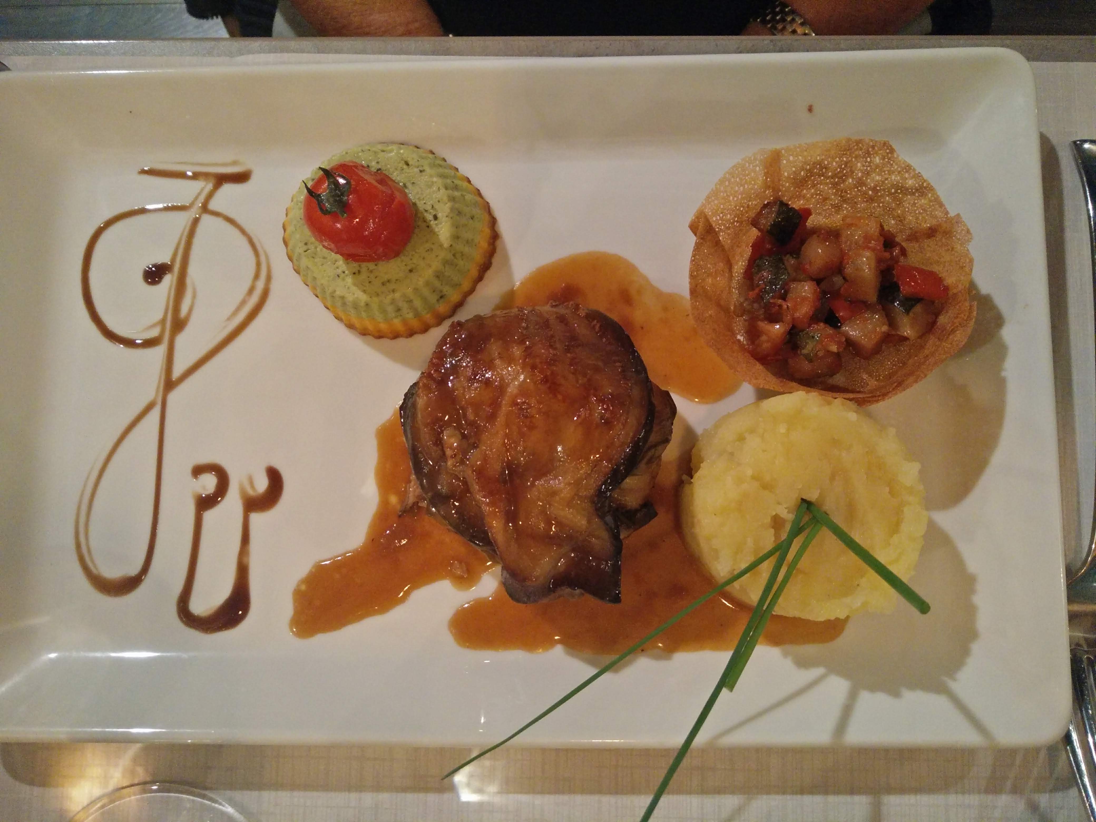 Un bon restaurant à Orange. Un foie gras de canard en entrée suivi d un fondant d agneau et un moelleux au chocolat accompagné d une boule de glace à la vanille.