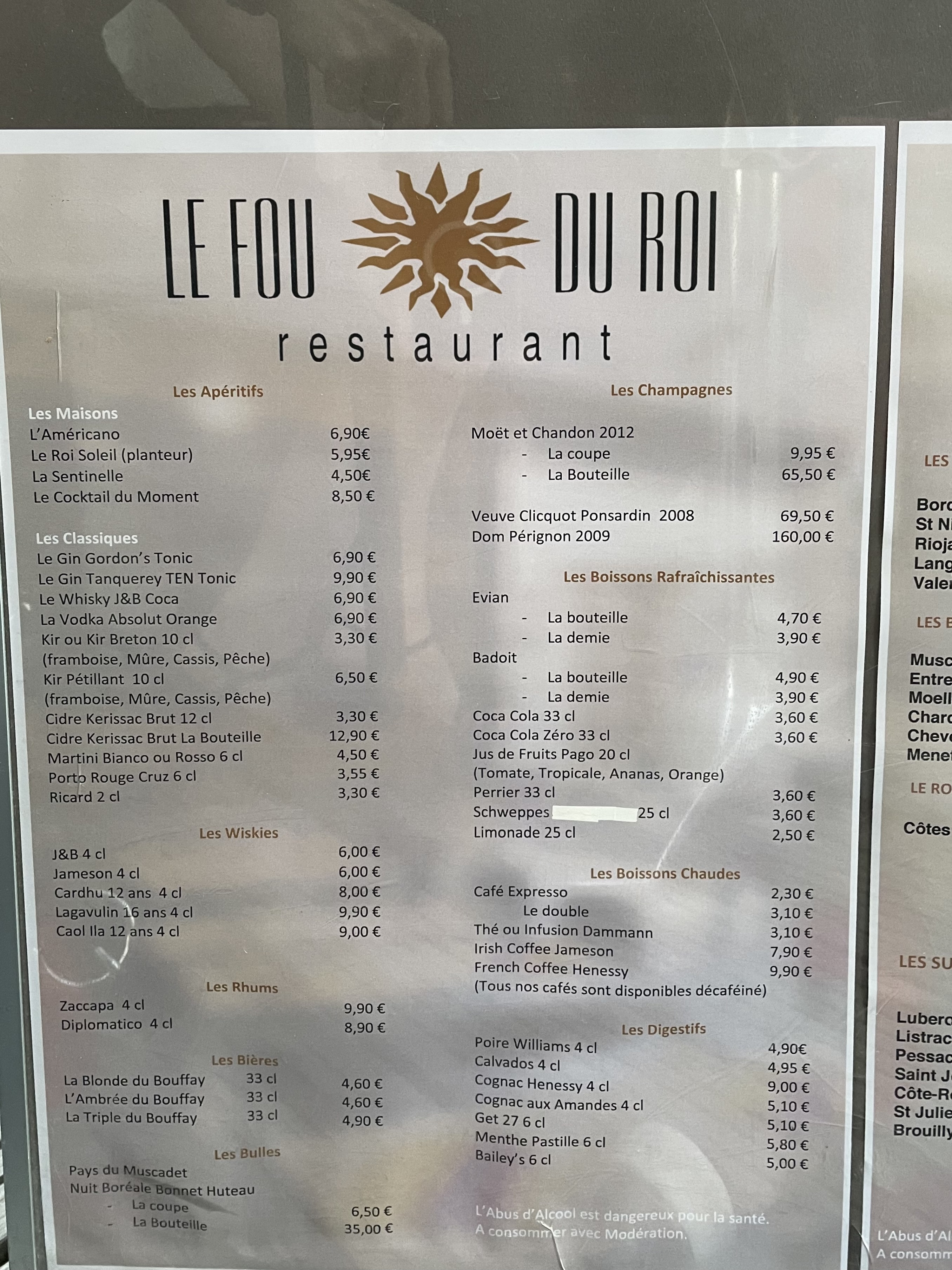 Après une après midi pluvieuse, le dîner au fou du roi a été un très bon moment, personnel agréable et accueillant, plats pas très originaux mais cependant excellents. Bref je recommande.
