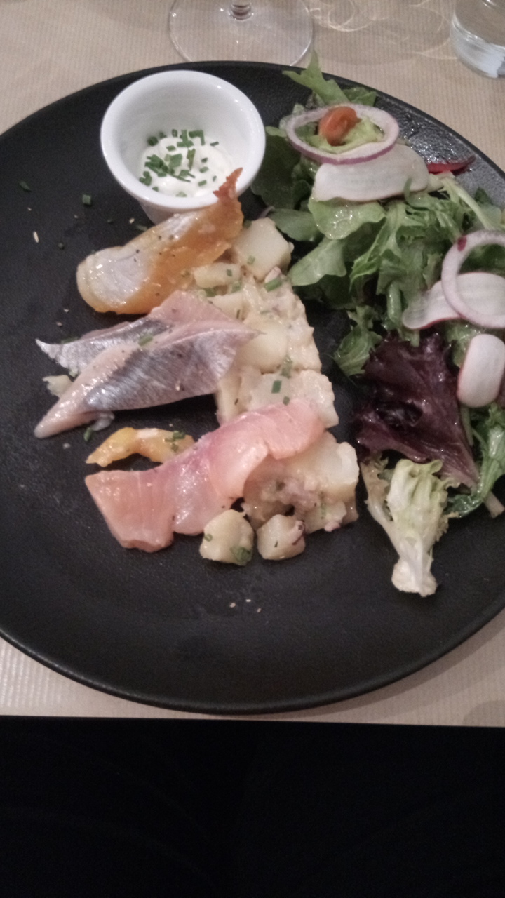 Déjeuner avec le menu entrée + plat + dessert à 17,60 €. Bon rapport qualité/ prix. Accueil pas très souriant.