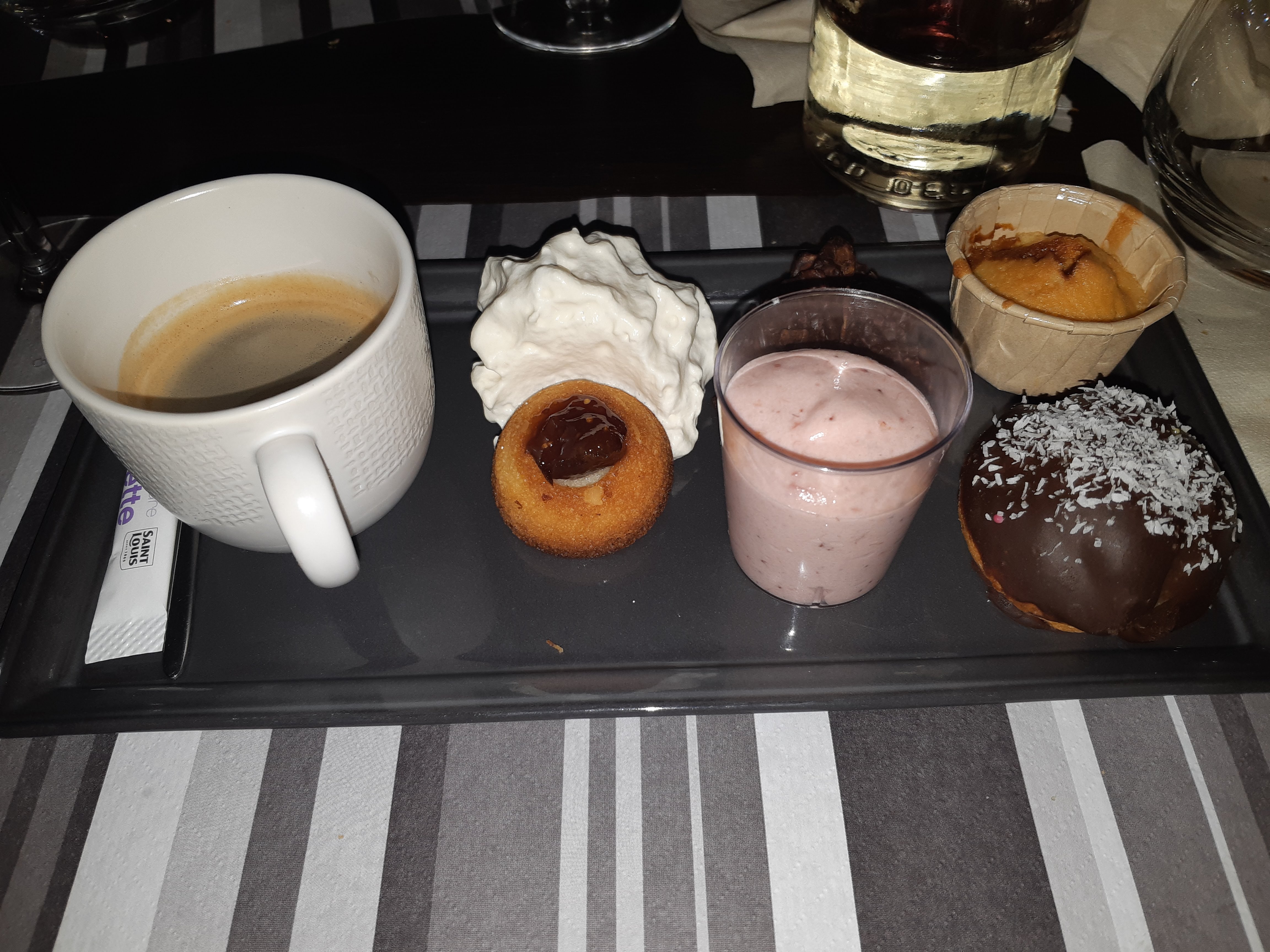 Tres bon moment gustatif. Oeuf cocotte aux Cepes et cabillaud en croute d'ail. Attention a la surcuisson de la viande de boeuf de mes compagnons. A point c'etait tres cuit, dommage.