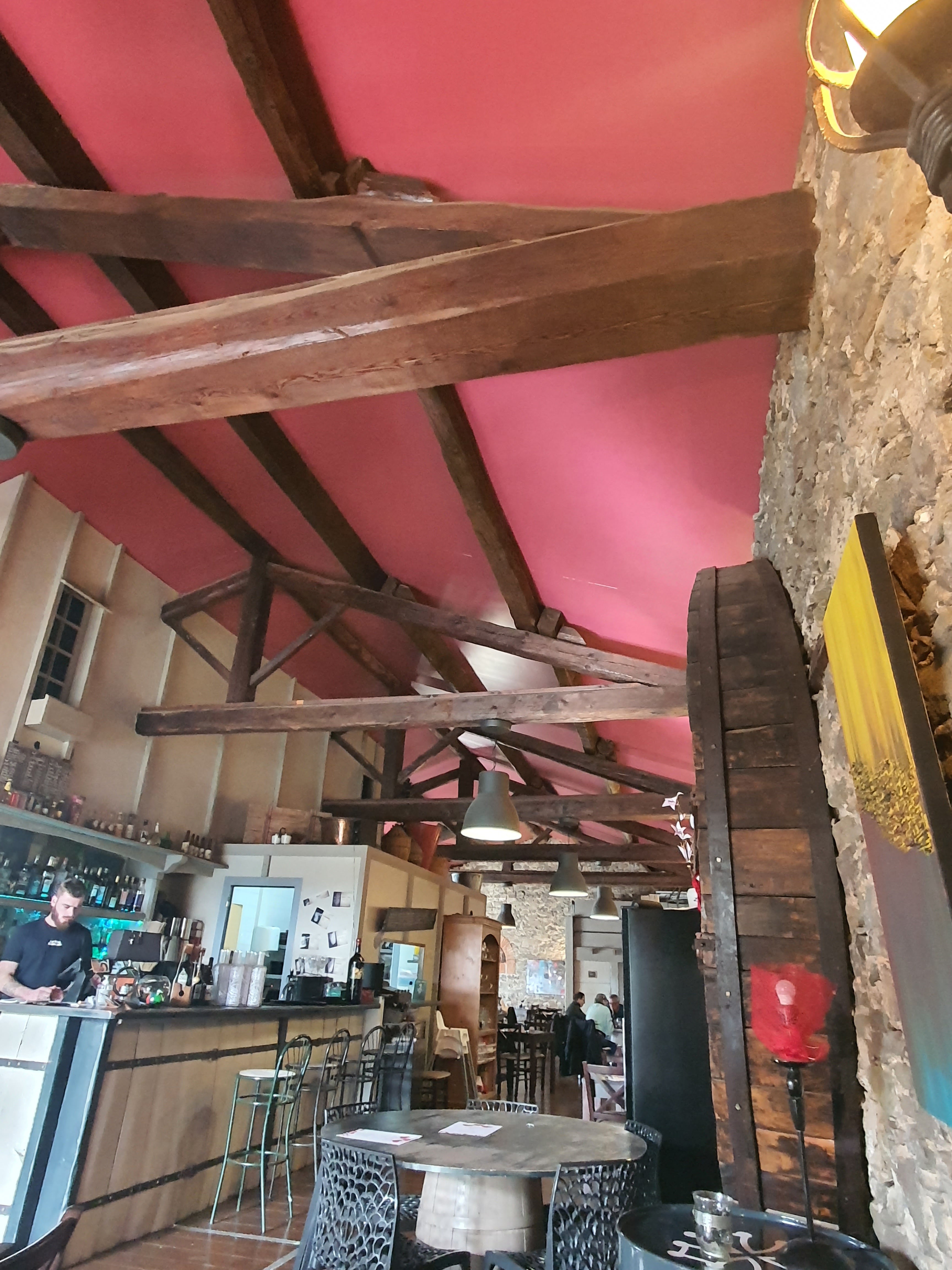 Joli restaurant terrasse ombragée oú l'on est bien installé, on y mange très bien, le menu à 29€ est très copieux avec une salade accompagnée de foie gras, de tapenade maison, confiture, pain d épices et salade verte avec choux rouge et carotte, l agneau est délicieux , copieux accompagné de puree maison avec des eclats d olives noires et des petits légumes, dans la carte des desserts les profiteroles sont très bonnes. L intérieur du restaurant est joliment décoré cathare, un cuvage avec les poutres et un gros foudre d origine.