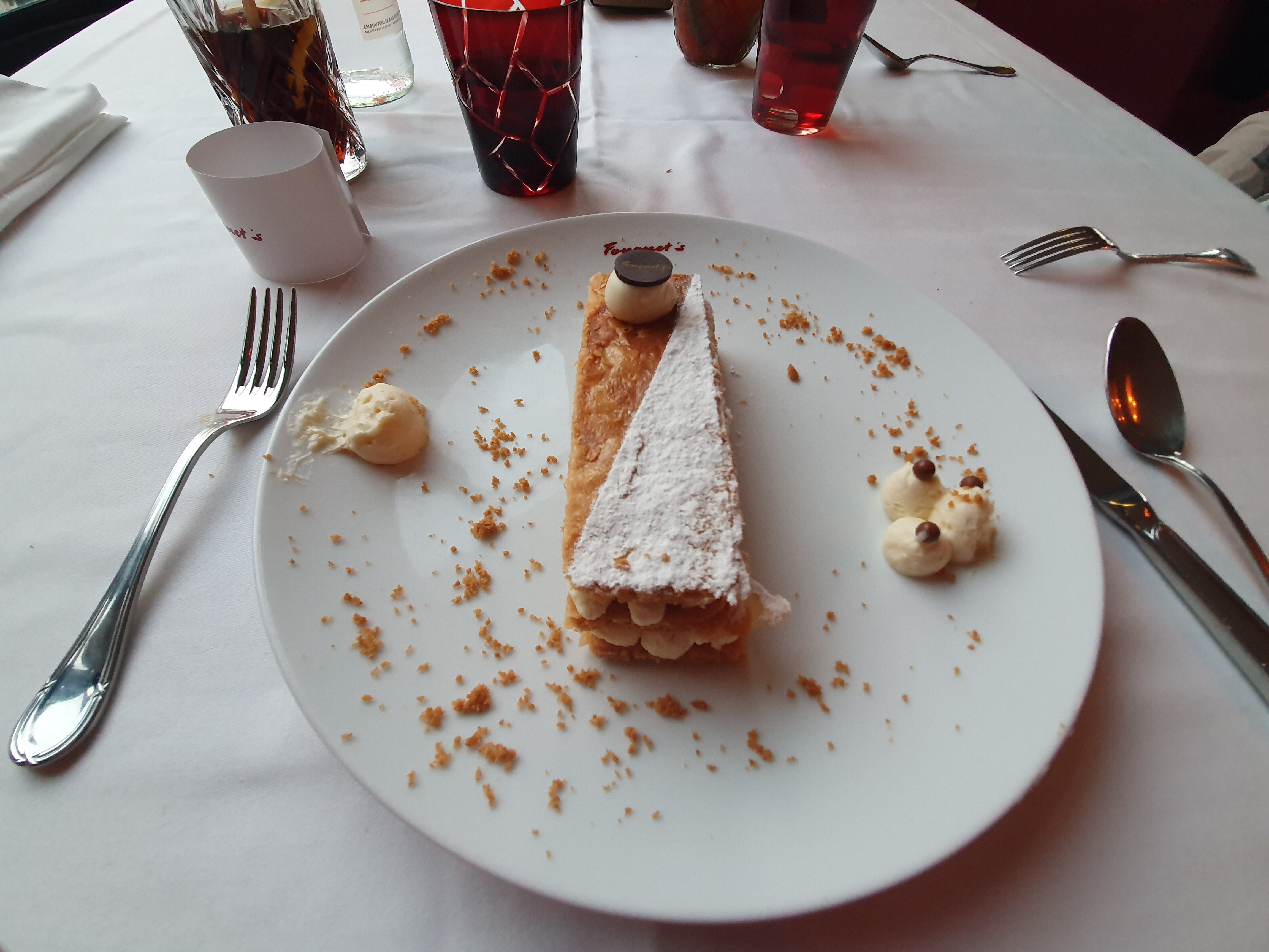 Nous avons passé un bon moment en famille Pensez à réserver une table si vous souhaitez y déjeuner ou y dîner Le personnel est agréable et de bon conseil Nous avons opté pour le menu 60EUR mais un peu déçus par certains plats Entrée Pâté en croûte Poêlée d'encornets au piment (pas assez relevé) Plat Darne de saumon Suprême de volaille (un peu fade et pois gourmand un peu trop salé) Dessert Baba au rhum Mille feuille (pas le creme pâtissière habituelle mais une autre crème un peu épaisse, je nia pas réussi à déterminer le goût de la crème) Très beau lieu avec terrasse lors de beau temps