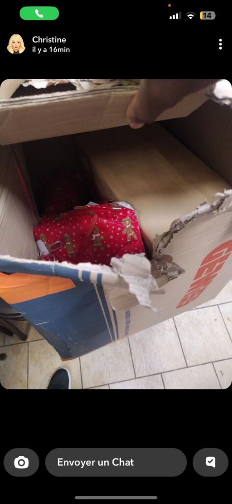 Voici une photo de mon colis envoyé le18/12 en très bon état avec un poids de 15kg , suivis de photos lors de la réception de mon colis dans ce point relais, qui visiblement ne pèse plus que 6kg !!! Je suis censé avoir 2 colis , hors il y a un colis introuvable alors que qu'il est censé être chez vous. Le seul colis que j'ai et pour le peu qu'il reste car mon colis a été ouvert avec vols de plusieurs articles à l'intérieur ! Les seules choses qu'ils restent sont elles-mêmes défectueuses! A fuir pour vos réceptions de colis !