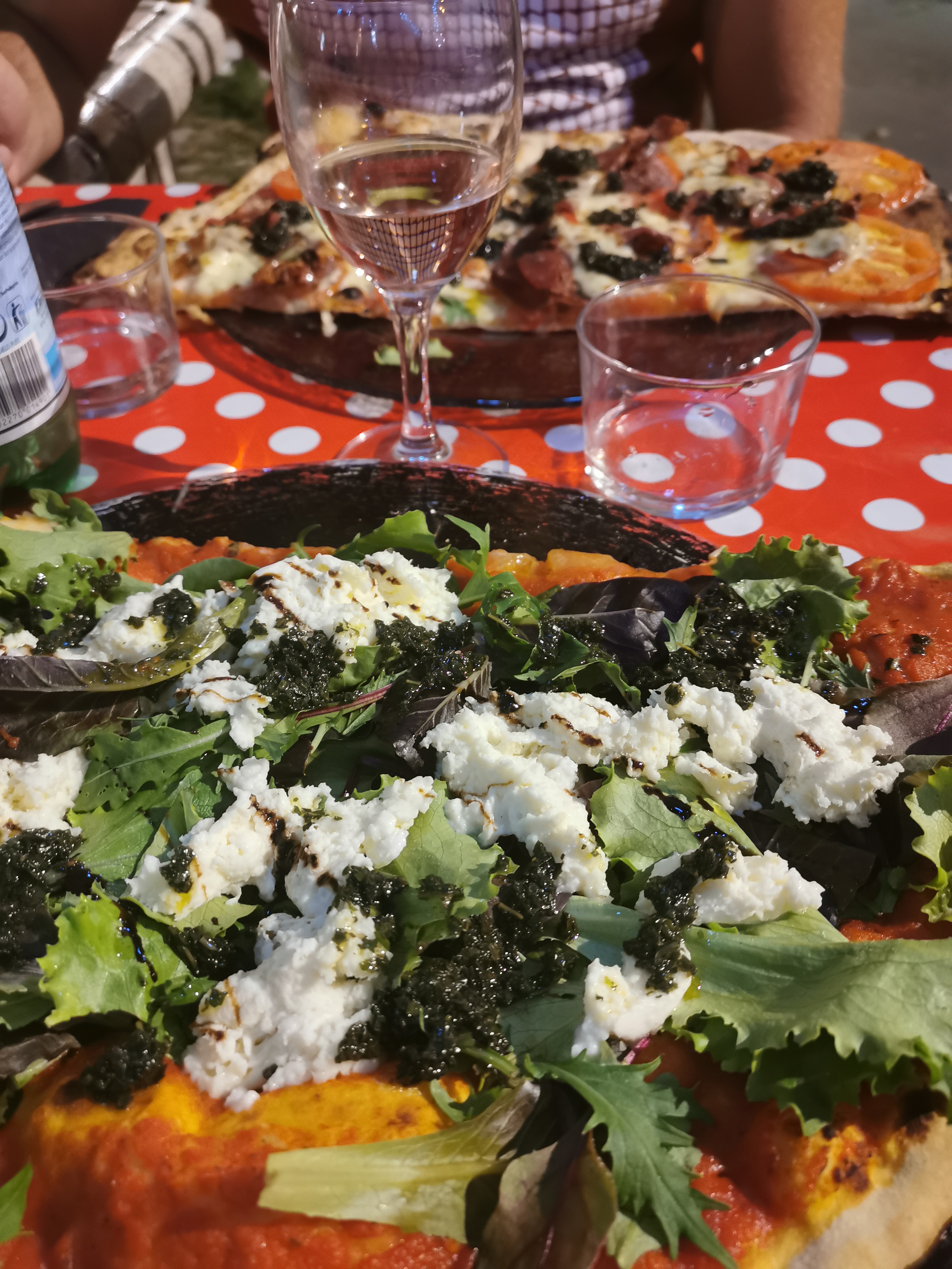 Plus rapide pour l’addition que pour avoir la carte. 17€ pour une DEMI pizza pour manger sur une table de camping sur une terasse très inclinée, ce n’est pas la meilleure expérience. Tous les plats autour de la table étaient corrects.