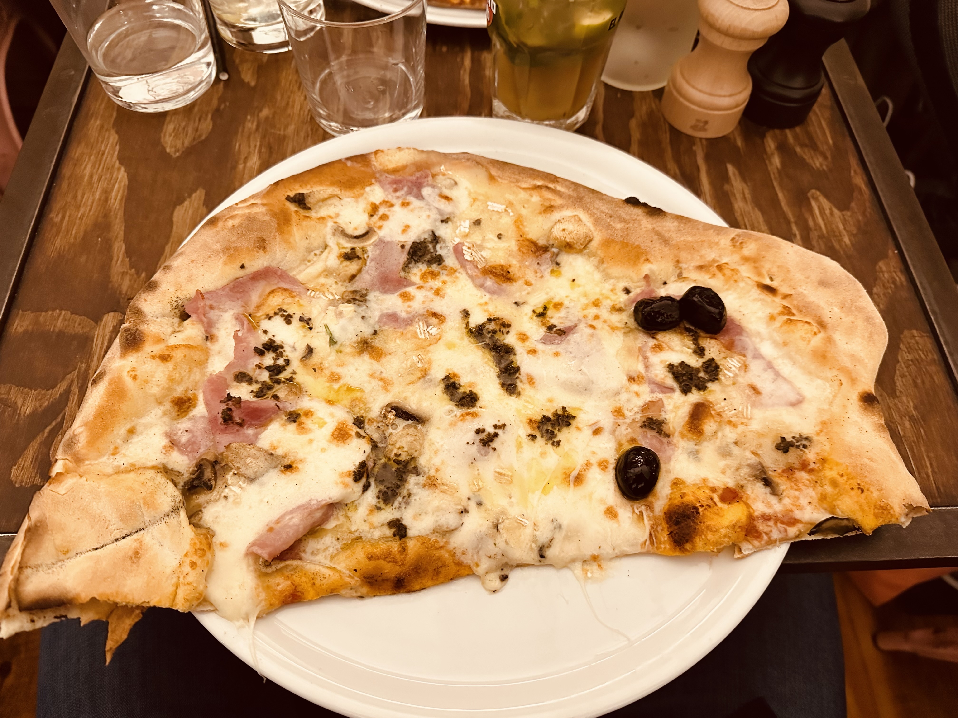 Je vous conseille la pizza à la truffe, vraiment très bonne. Pâte fine et vrai goût de truffe et les champignons sont excellents. Superbes