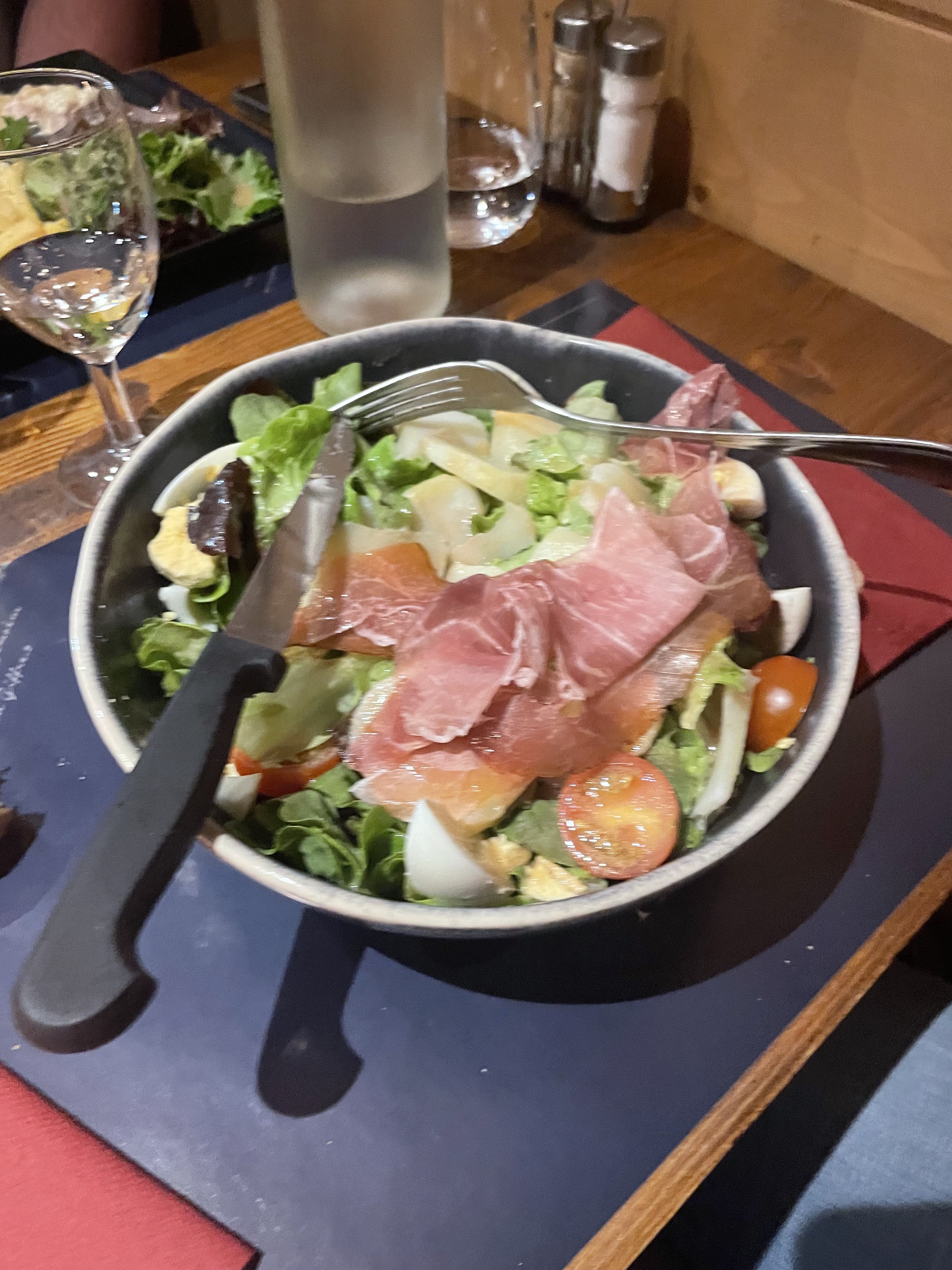 Restaurant basique produits semblent pas de très bonnes qualités Exemple : salade chèvre chaud 4 morceaux rondelles de baguette blanche avec un très fin morceaux de chèvre dessus … Ce n’est pas très recherché ni travaillé Lardons industriels Ceci pour 14€ Les choix des consommations sont très industrielles, pas de réelles recherches de produits locaux : Toutes la panoplie des sodas indus ( coca schweppes…) , un seul Type de bière ( brasserie du mont blanc pas vraiment locale ..) Peut être brasserie du criou pour faire du partenariat avec vos homologues ? Nous n’avons pas testé les plats type savoyards donc nous ne jugerons pas du reste Restaurant NON DOGFRIENDLY Chien non accepté