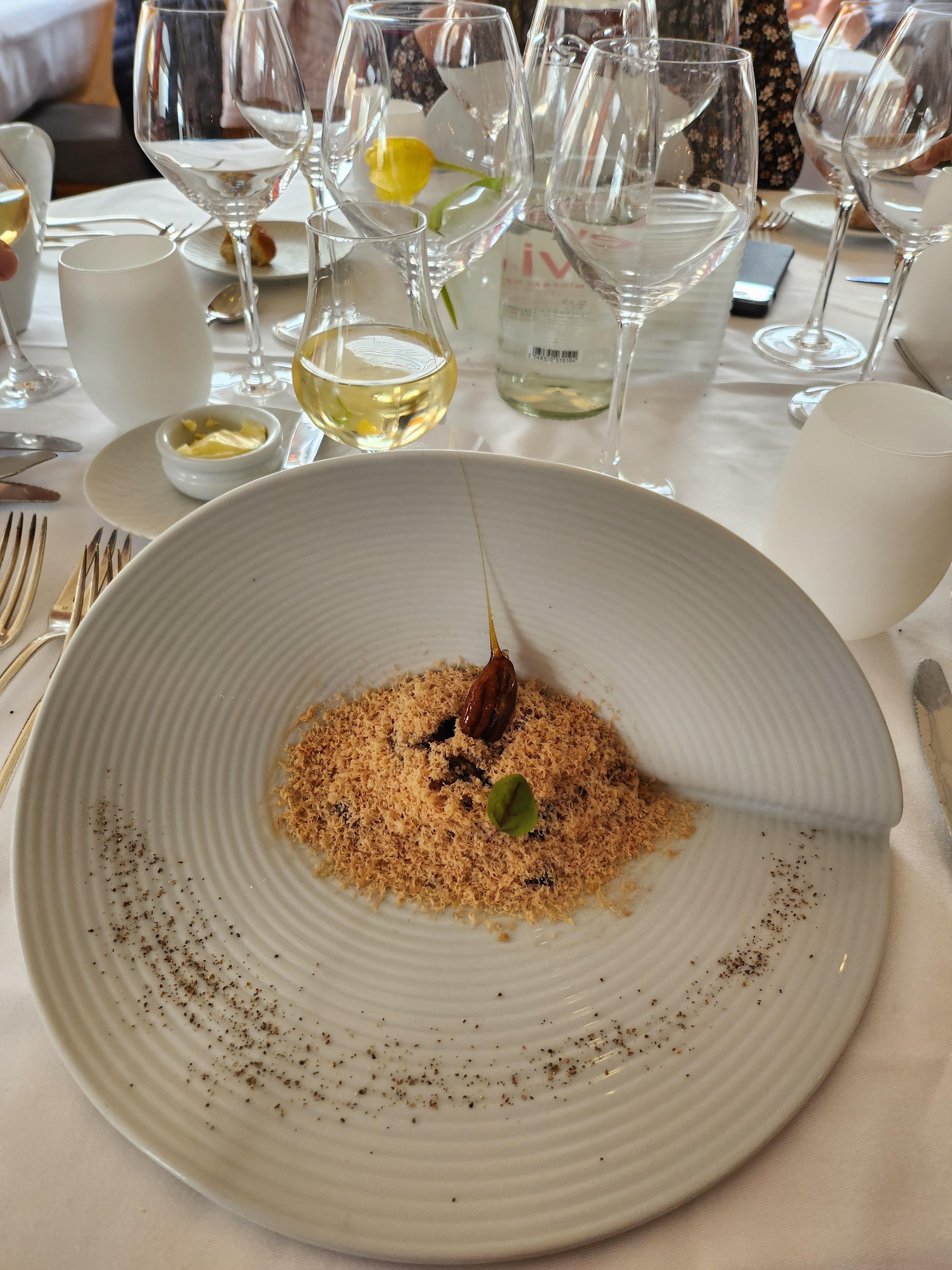 Repas excellent mais longueur du service. Avons attendu 55 mn entre l'entrée et le plat de résistance. Oublié de nettoyer les miettes avant le dessert comme cela doit être fait pour 1 étoilé. Surtout ne passez pas la nuit chambres mal insonorisees.on vit avec le voisin !