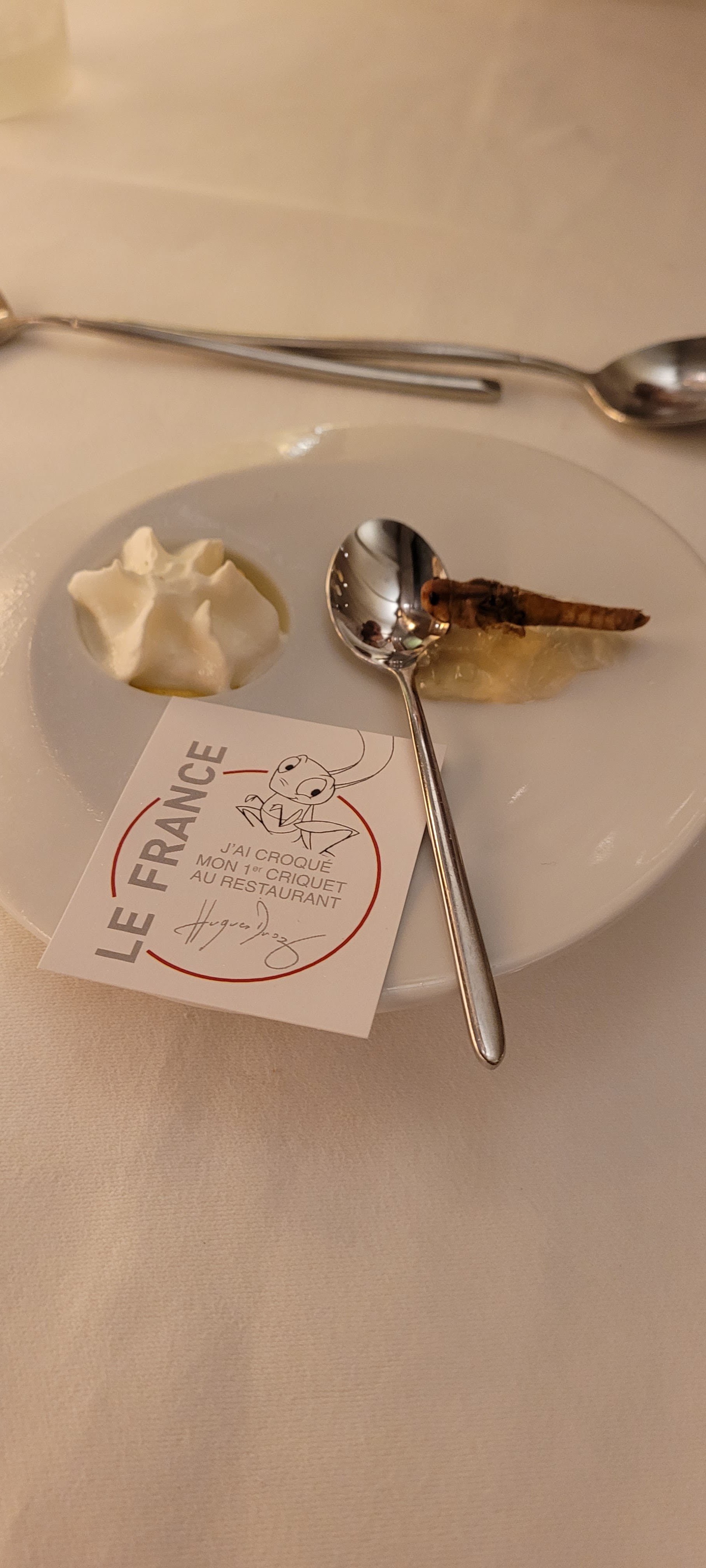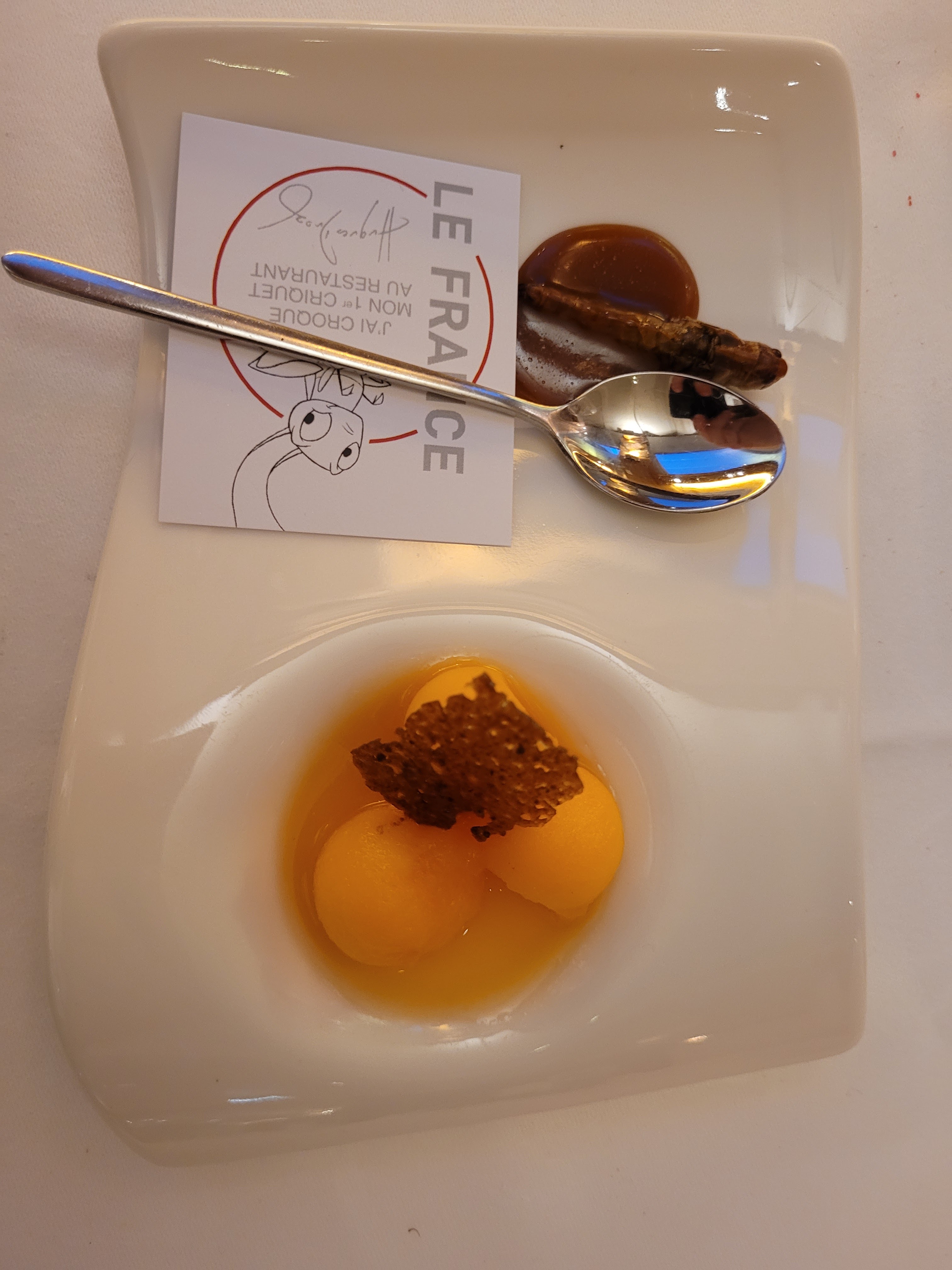 Excellent repas de l'entrée au dessert, que dire de plus. Le criquet au caramel fait partie des petites surprises qui témoignent de l'originalité du chef, que l'on ressent aussi sur les autres plats ! Le carpaccio de poulpe a particulièrement retenu mon attention. Service attentionné au timing bien réglé, quelques petits couacs réglés avec professionnalisme qui se font vite oublier, impeccable à bientôt !