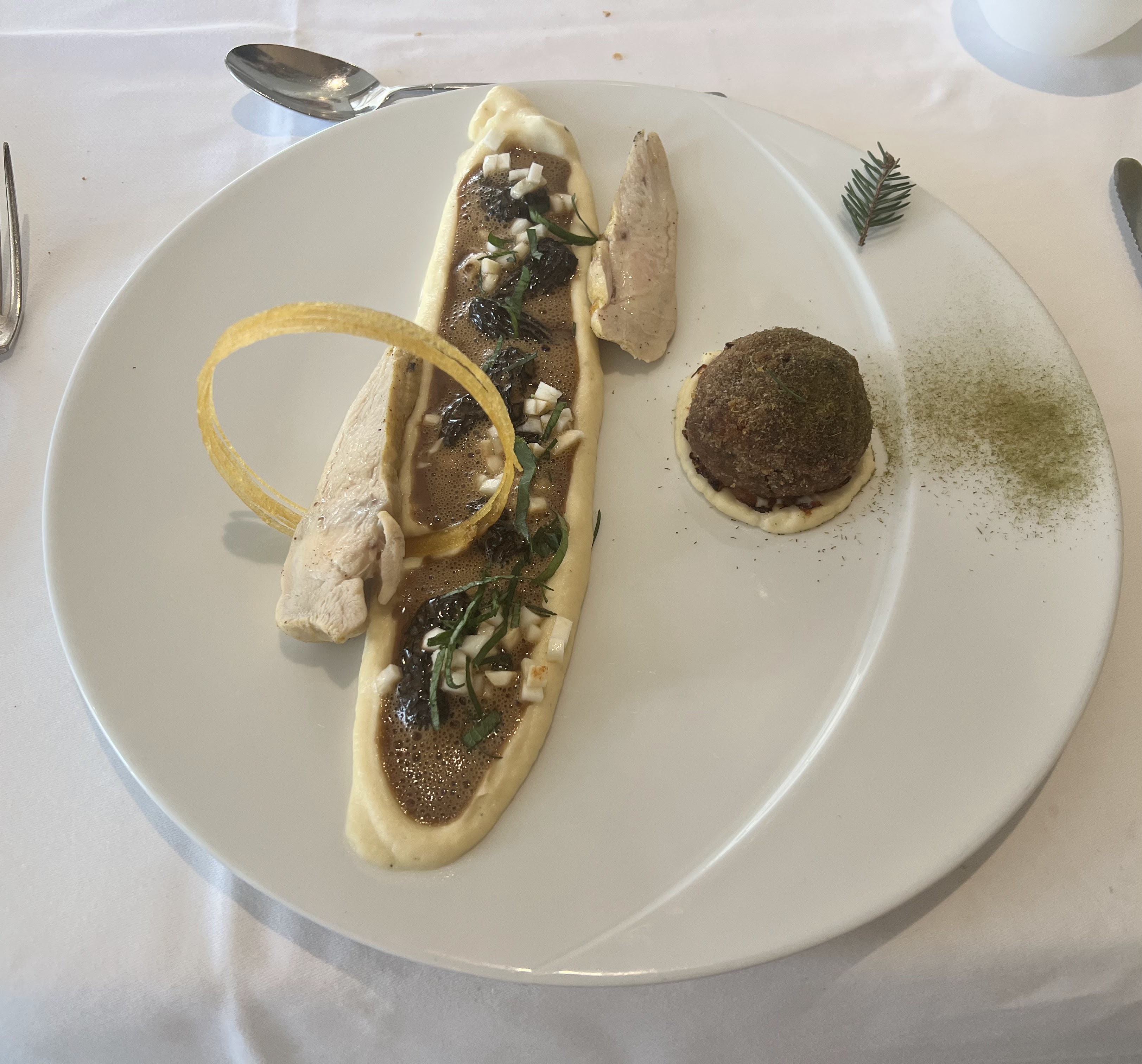 Cuisine raffinée, plusieurs menus au choix. Le service semblait parfois débordé, ce qui aurait pu être dû au plus grand groupe de clients. Le poulet de Bresse était un peu petit. Belle sélection de fromages