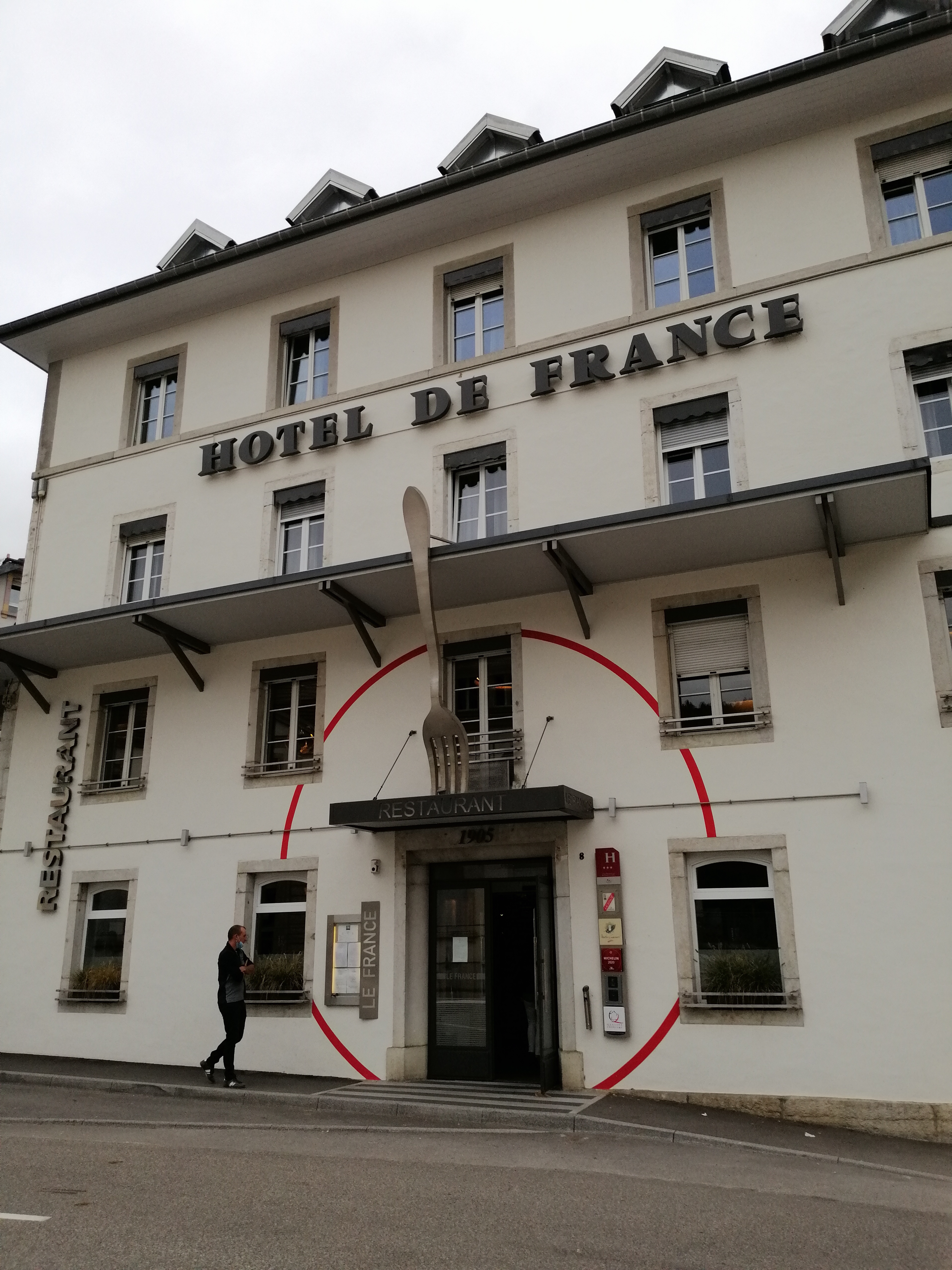 Le restaurant de l'hotel de France est une bonne table malgré quelques bémols !!! . Cadre accueillant , mélange de style moderne et contemporain à tendance Franc Comtoise ... Le chef Hugues Droz nous concocte des mets raffinés et de très bonne présentation. Par contre le service est exécrable ; la serveuse ( probablement apprentie où stagiaire) n'est pas du tout à sa place . Elle a d'abord commencé par faire tomber le beurrier en début de repas , qui s'est brisé par terre , et n'a même pas daigné ramasser les morceaux qui jonchaient le sol . Ensuite elle a apporté les verres d'apéritif qu'elle posait au bord de la table a la limite de tomber plutôt que de les mettre près des autres verres. Elle servait anarchiquement les assiettes à gauche où droite et surtout pas dans les règles de l'art . Elle jetait plus qu'elle ne posait les couverts !!! Le sommelier n'était également pas capable de nous prodiguer un conseil . Donc en résumé si le restaurant veux garder son étoile , il serait urgent qu'il revoit sa politique d'embauche de personnel . Car ce n'est pas la première fois que nous venons ici , et le service a toujours été médiocre...