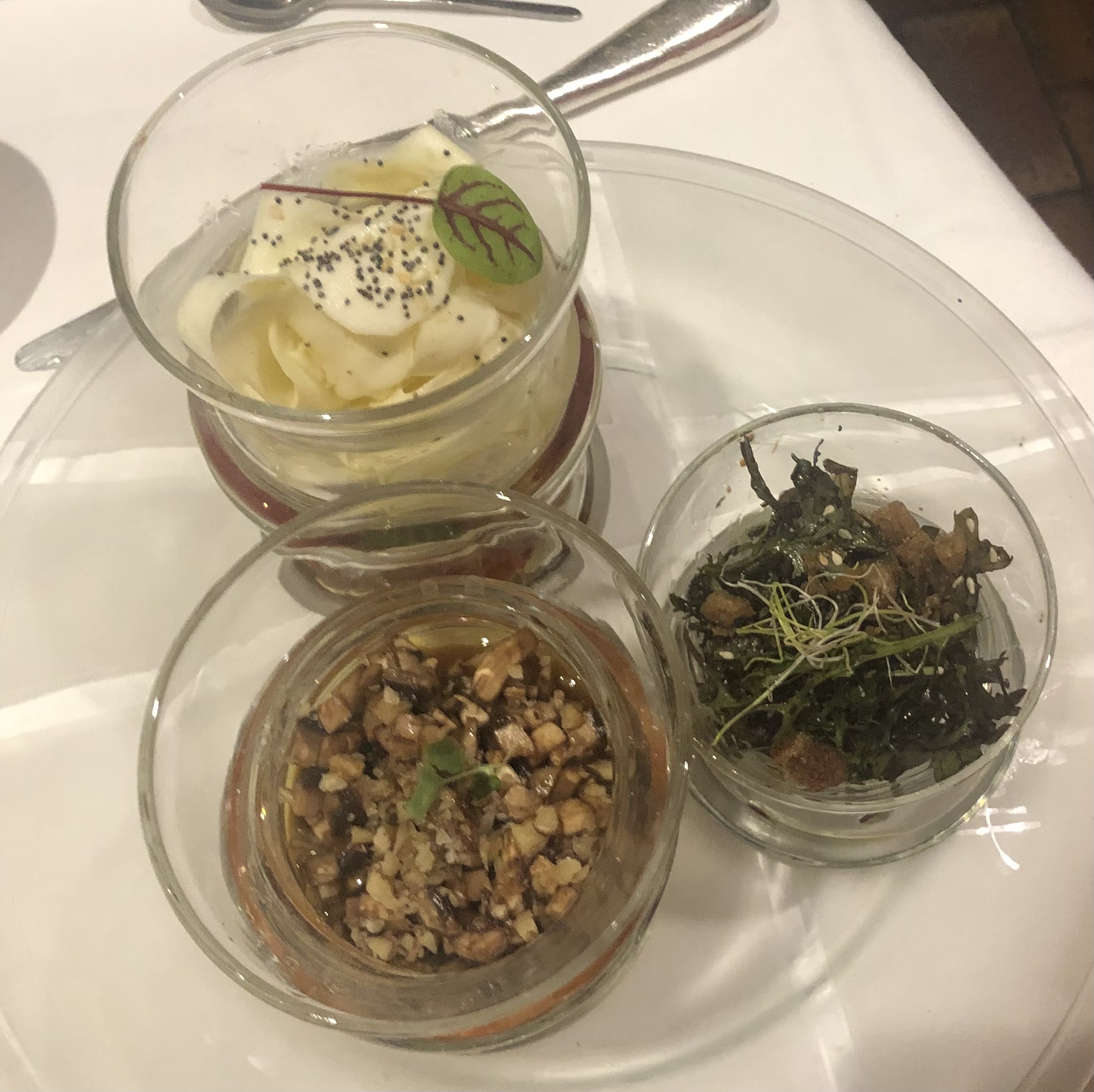 Le repas fut agréable malgré pas mal de loupés de la part des serveuses. 3 sortes de pains en entrée mais le dernier n'a finalement plus le choix car il ne reste plus les 3 sortes... Le repas était plutôt bon, mais rien d'extraordinaire. Les chips qui faisaient partie du repas étaient beaucoup trop épaisses (et donc trop dur, difficile à manger), et le repas principal donnait plus l'impression à une entrée. Le cadre reste agréable, les serveurs gardent leur masque (contrairement à certains autres restaurants). Le restaurant en soit n'est pas mauvais, la note va plutôt avec le service attendu par rapport au prix. Si les prix (desserts a 15€ par exemple) n'étaient pas exorbitants, la note aurait été de 4 ou 5 étoiles. Le soucis étant qu'à ce prix, il y a plus d'attente qu'un restaurant proposant des plats moins chers. Dans d'autres restaurants, la cuisine est bien plus raffinée pour un prix inférieur, d'où ma note.