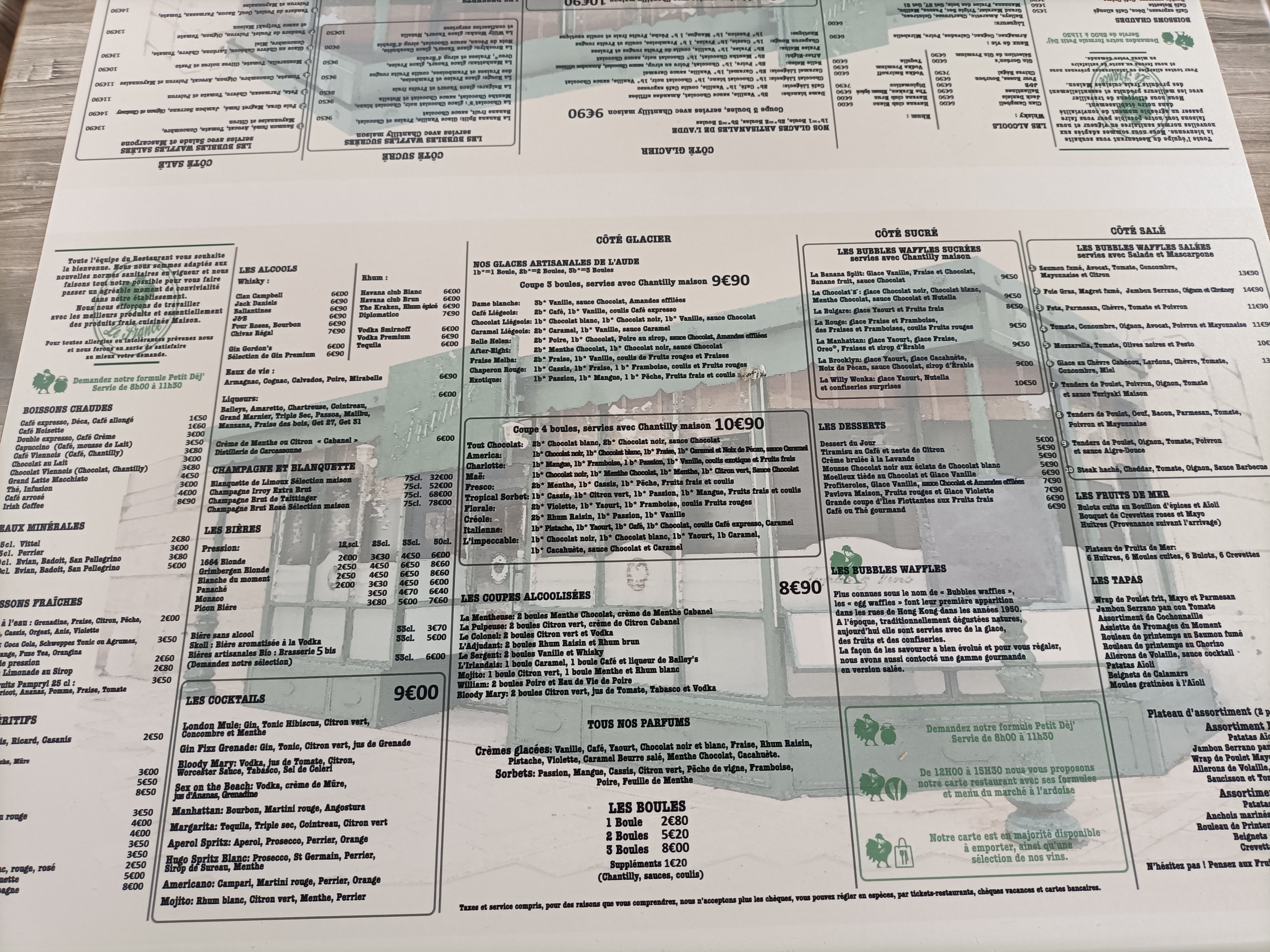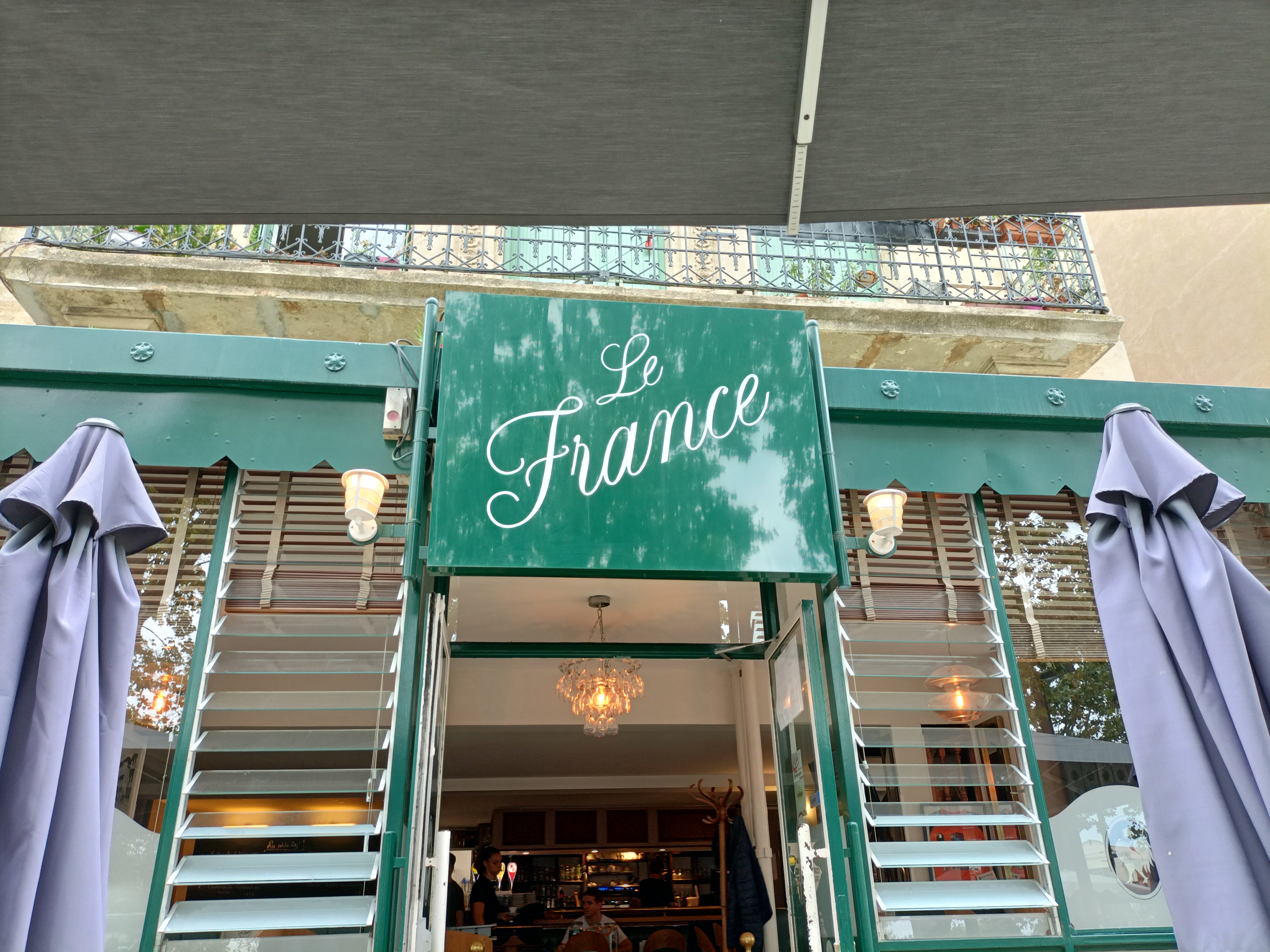 Le France est bien situé au centre ville de Narbonne, sur une place dégagé et calme. La terrasse est bien ombragé et les tables ne sont pas outrageusement collé les unes aux autres. Les serveurs et serveuses sont efficaces et souriants, c'est agréable. On peut y manger des assiettes de charcuteries et de fromages, servient en même temps selon vos désirs, accompagné du succulent vin blanc de la maison. Bien sur les classiques de la restauration sont également présent. A noter, les toilettes sont très propre et toit est fait pour ! Plus de belles photos sur l'instagram @harley_kustom_kultur