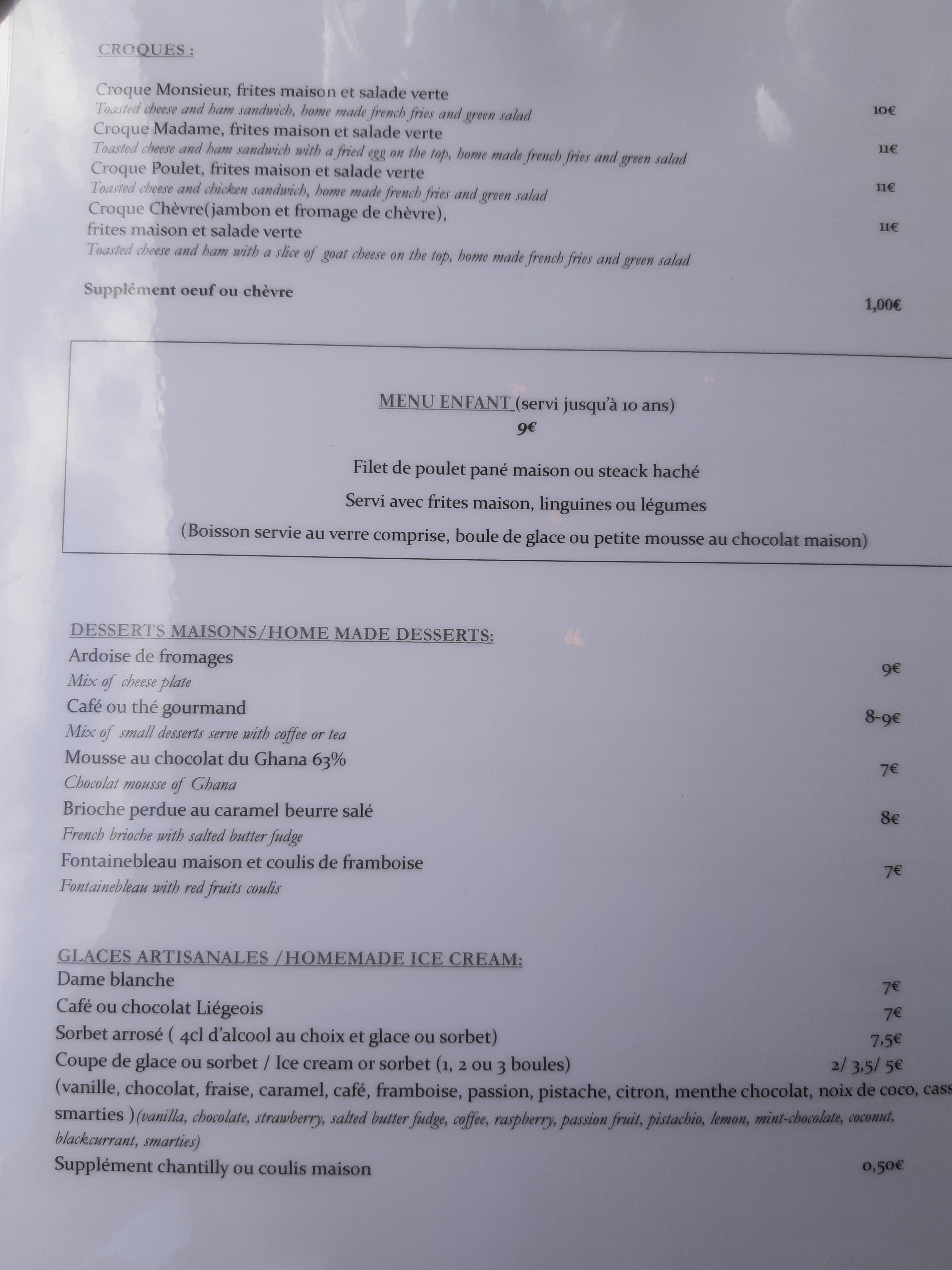 Toujours aussi bien ! Déjeuner à deux en terrasse. Carte réduite gage de cuisine maison et très rapport qualité-prix. Nous avons pris un croque-monsieur (10 eur) et un croque-chèvre (11eur) tous deux servis avec frites maison et salade. C simple et qualitatif. Serveurs sympas et efficaces. Bref, c'est l'une des bonnes adresses plein centre de Fontainebleau.
