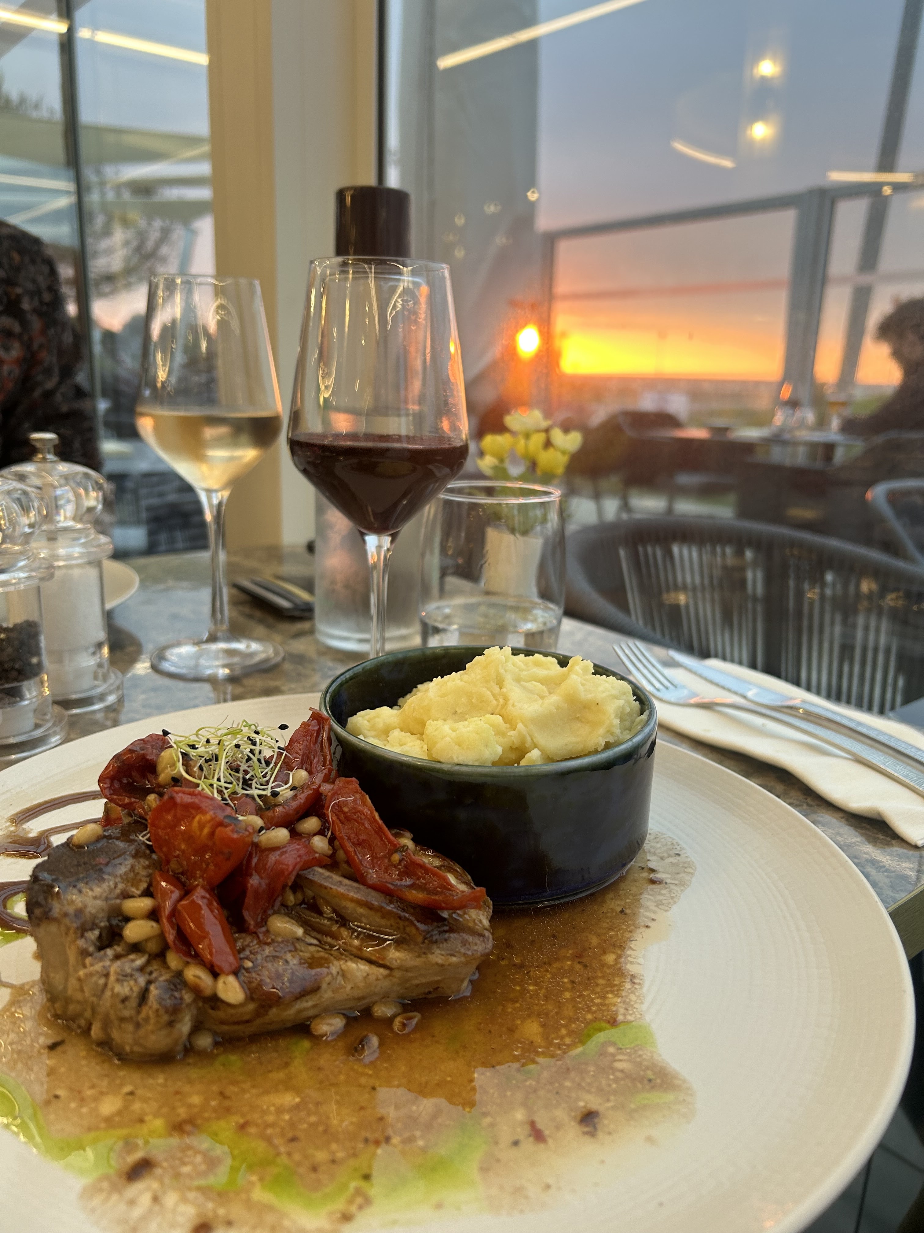 Très bonne cuisine. Tres belle vue. Belle et grande terrasse protégée du vent Peu d'ambiance parce que salle presque vide. Dommage.