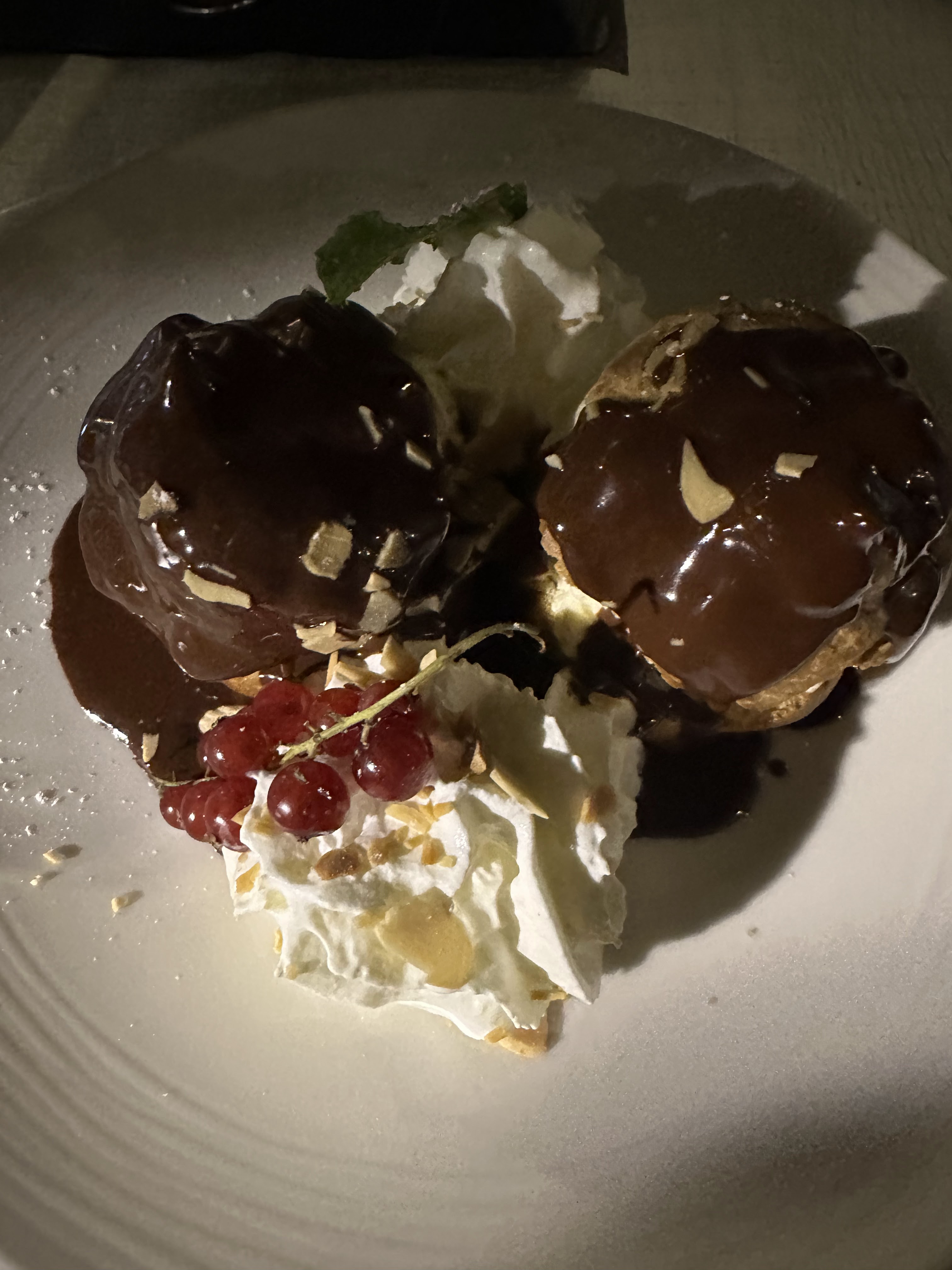 De passage, pour se dégourdir les jambes et se rafraîchir. Tres bon accueil, souriant et aimable Carte des desserts classique mais fournis Profiteroles genereuses et tres bonnes Excellent café gourmand tres tres gourmand Ne pas hésiter à s’arrêter !