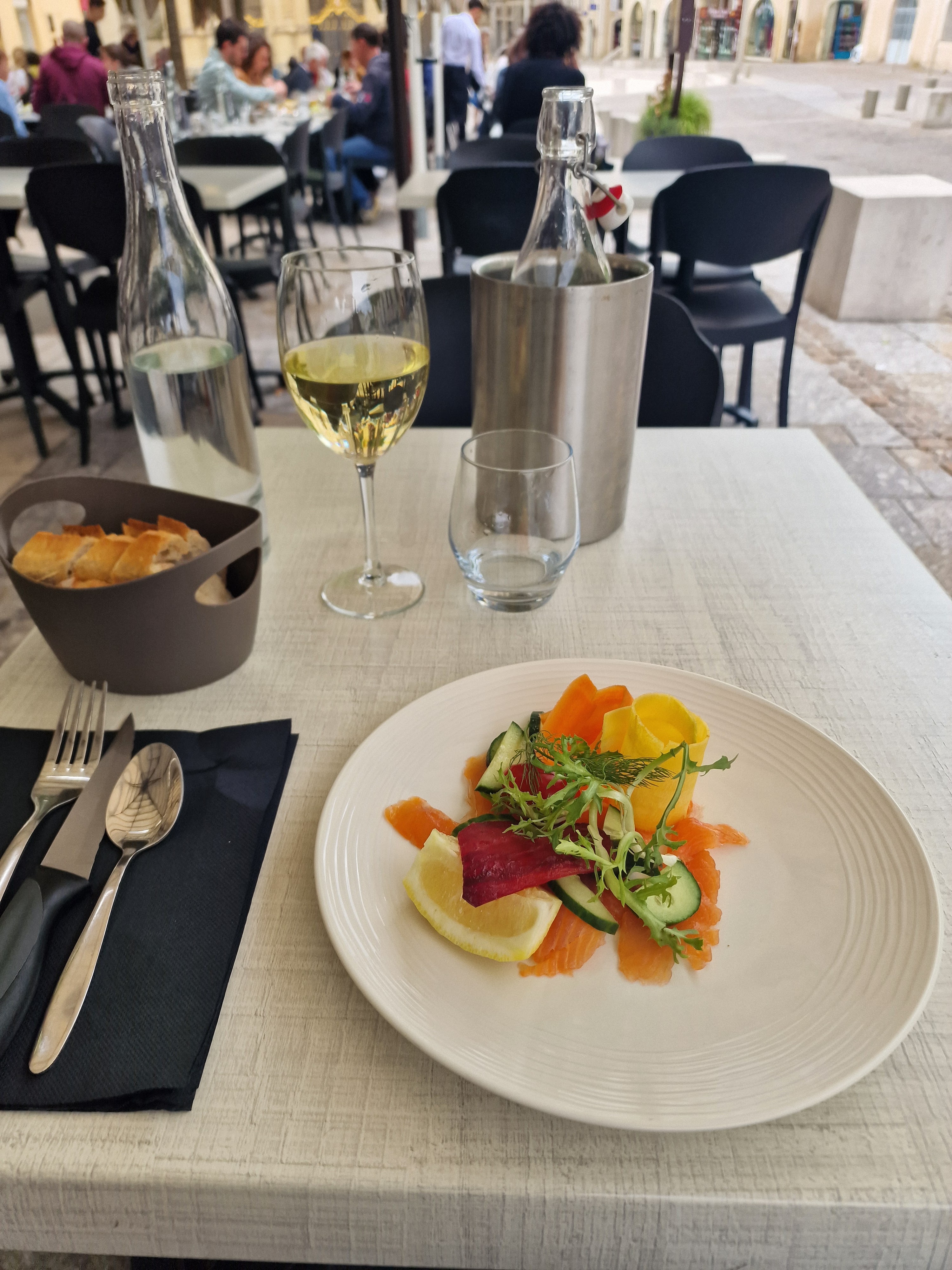 Bon, service rapide la majorité du temps, grande terrasse ensoleillée (rare à Auch) avec une vue sur la cathédrale, des critères qui font que ce restaurant va finir par devenir notre cantine à chaque passage dans la capitale gersoise.