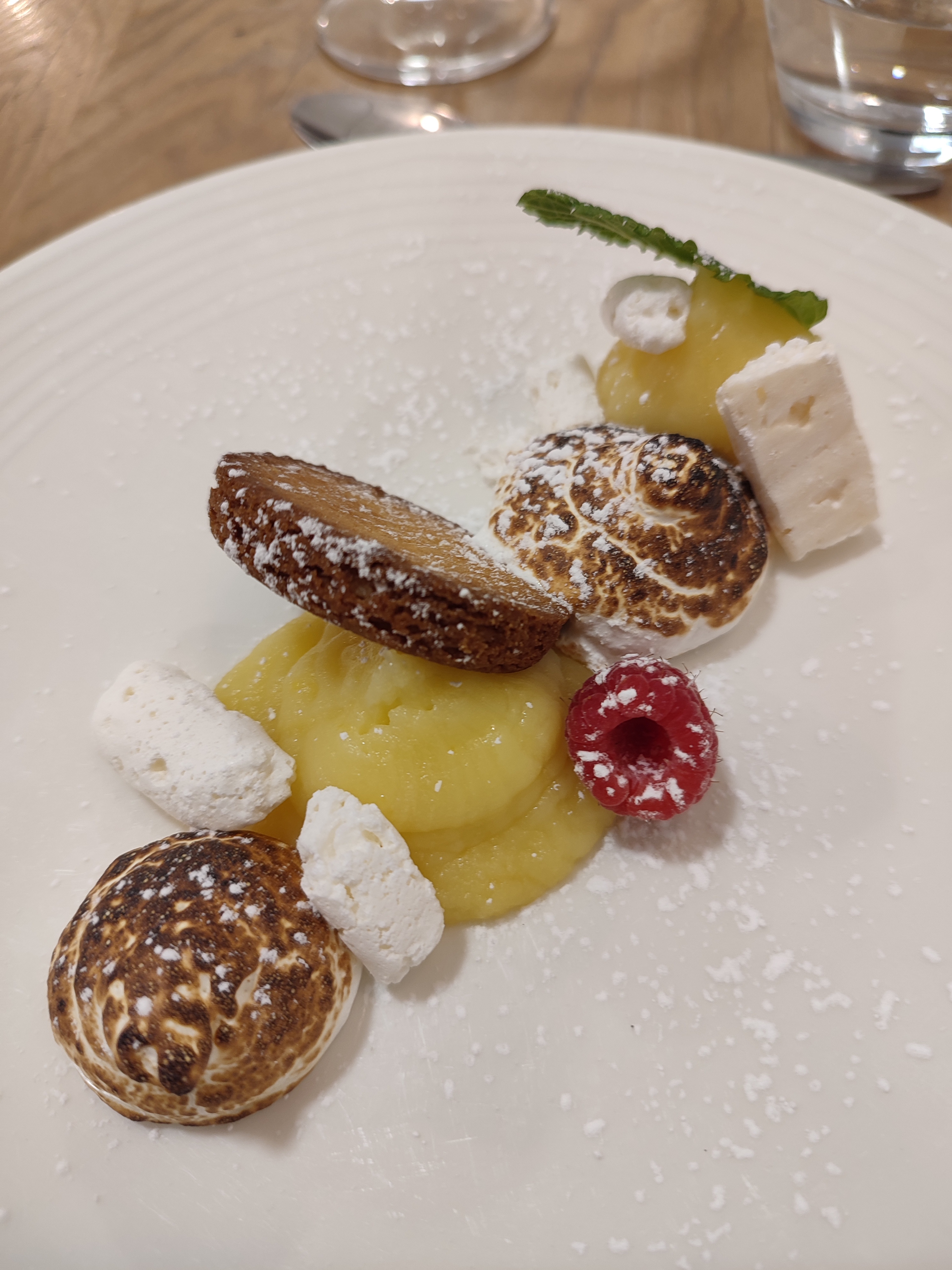 Restaurant que je ne conseille pas si la faim est là. Saumon gravelax en entrée rien à manger... pas de sauces... saumon de supermarché. Le personnel s'en fou quand la plaine fut faite mais en vain. Le plat le canard était délicieux ! Les pâtes froides. Et le dessert la blague de trop... voir les photo donc cela est vendu en tarte au citron ou est la tarte ?!?!?! Je suis scandalisé d'un menu à 24 euros ou y a rien et ou j'ai faim encore ! Je déconseille ce restaurant tellement dessus.