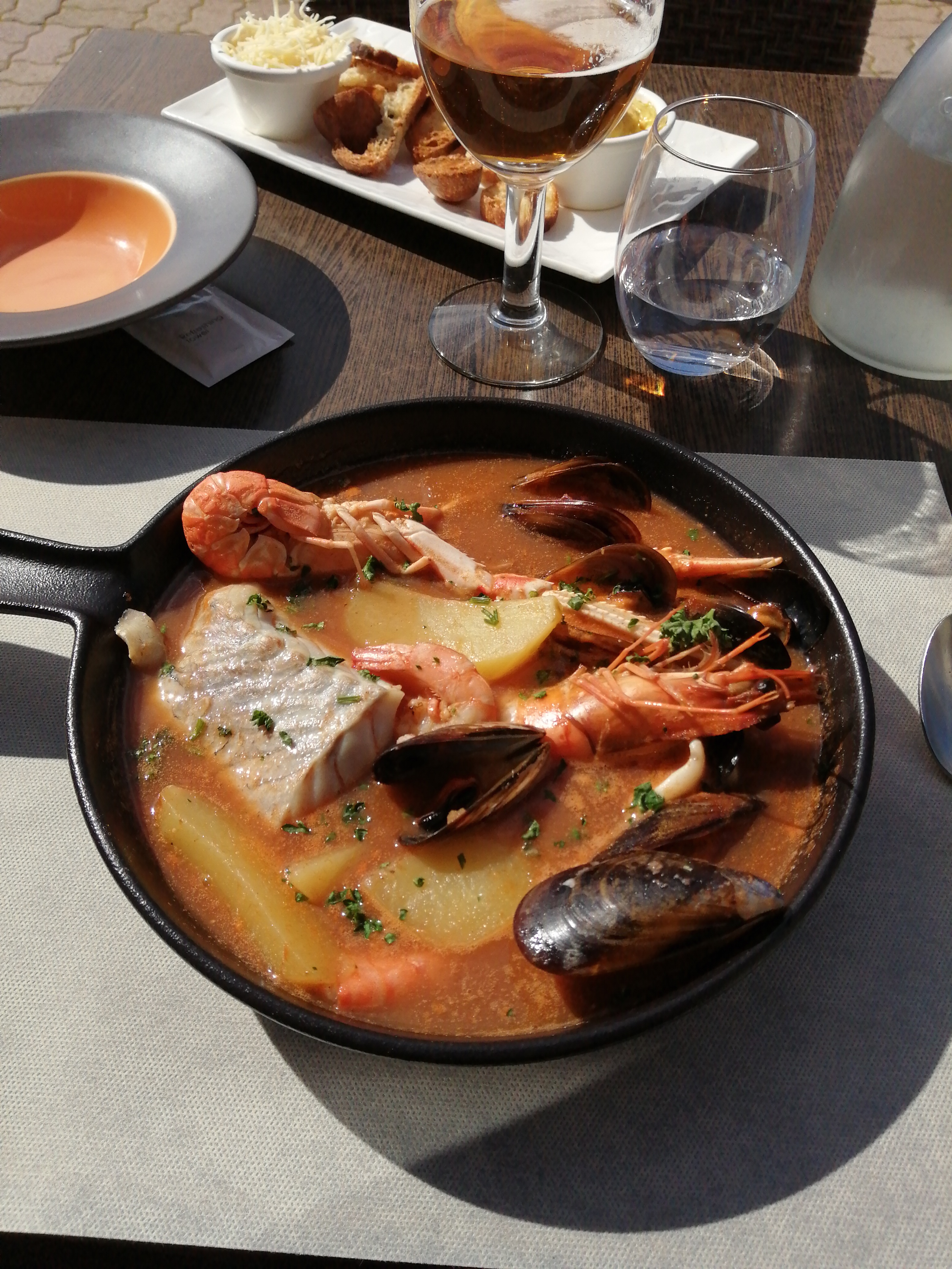 Un déjeuner en terrasse un dimanche de mars 2020 : EXQUIS Comme toujours, la marmite du pêcheur explose de saveurs et le baba au rhum chatouille les papilles.