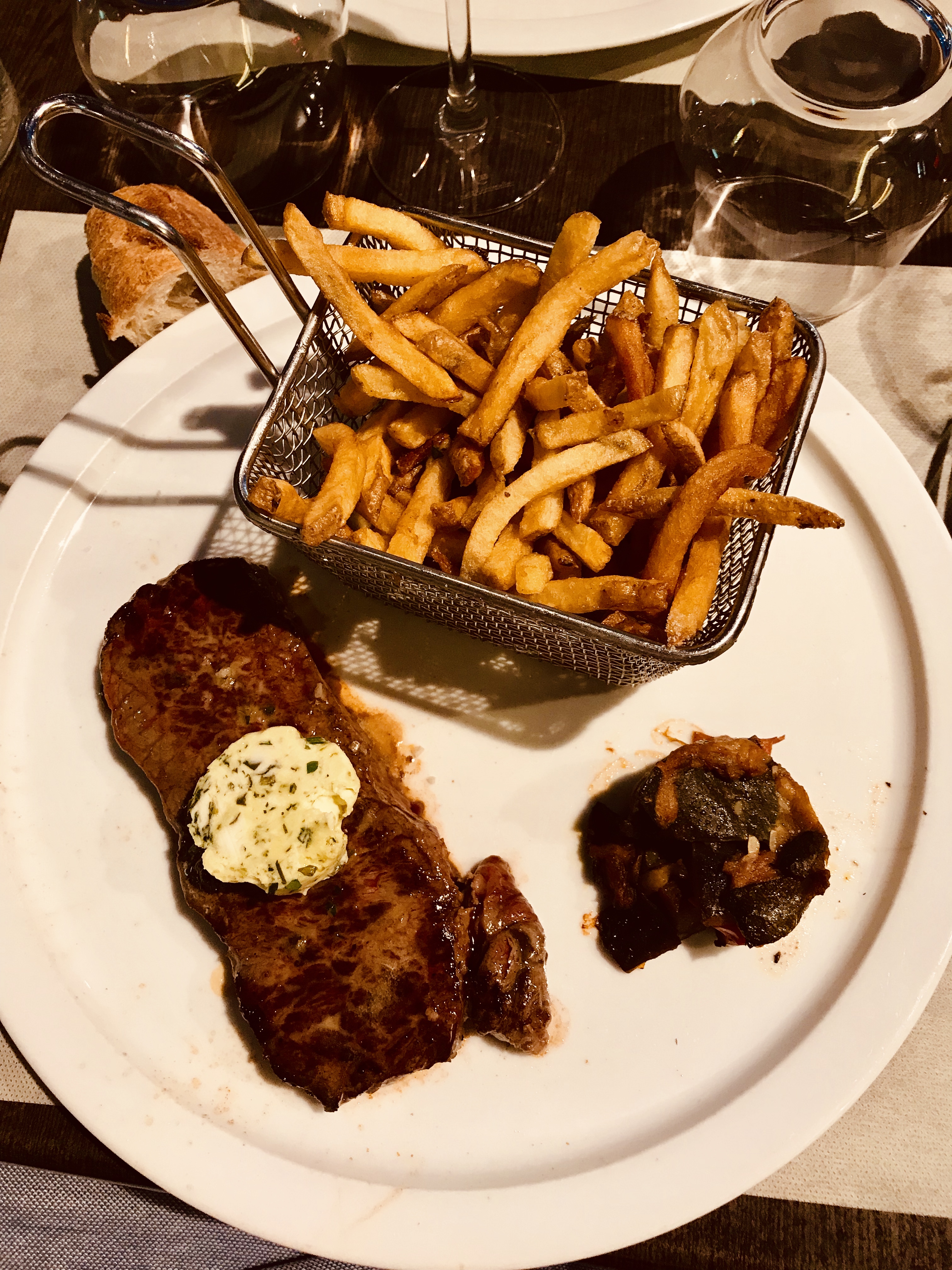 Un restaurant aux prix exorbitants ! Des produits sur la carte indisponibles. Des viandes servies avec une purée élastique à la couleur indéfinissable, des frites surgelées. Un vin correct. Ce restaurant est du niveau d’une chaîne de restauration. Honteux !