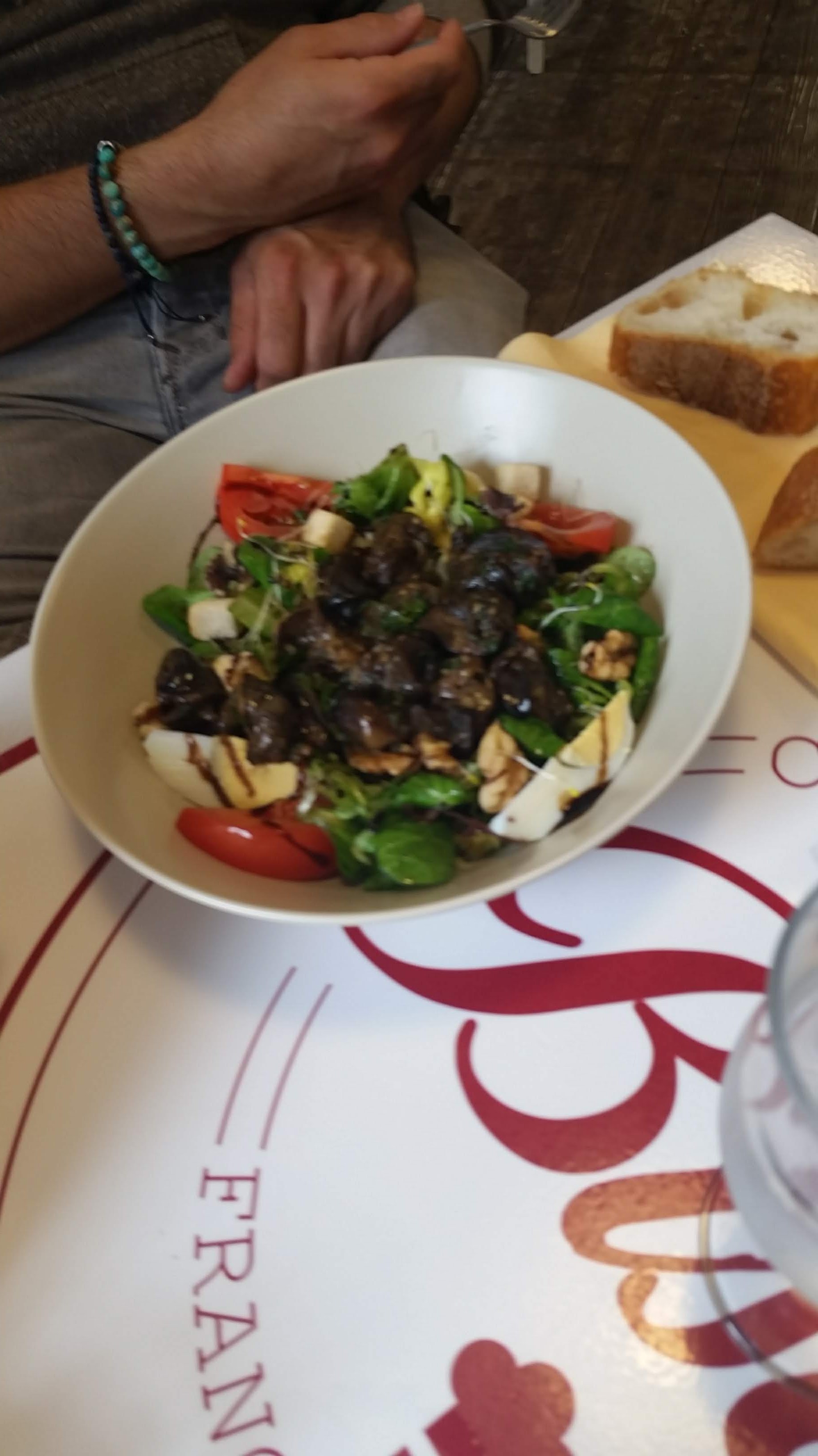 Très déçu. Commandé une grande salade chèvre chaud à 12euros. Heureusement nous avons commandé la grande salade. Il ne faut pas être difficile.( Un oeuf peut être. Un quart de tomate peut être . Quelques croûtons de pain bien sûr industriel . Du fromage de chèvre heureusement.mais quelle déception. Vu les avis des autres internautes je ne comprends pas où alors il ont changé de propriétaire ????