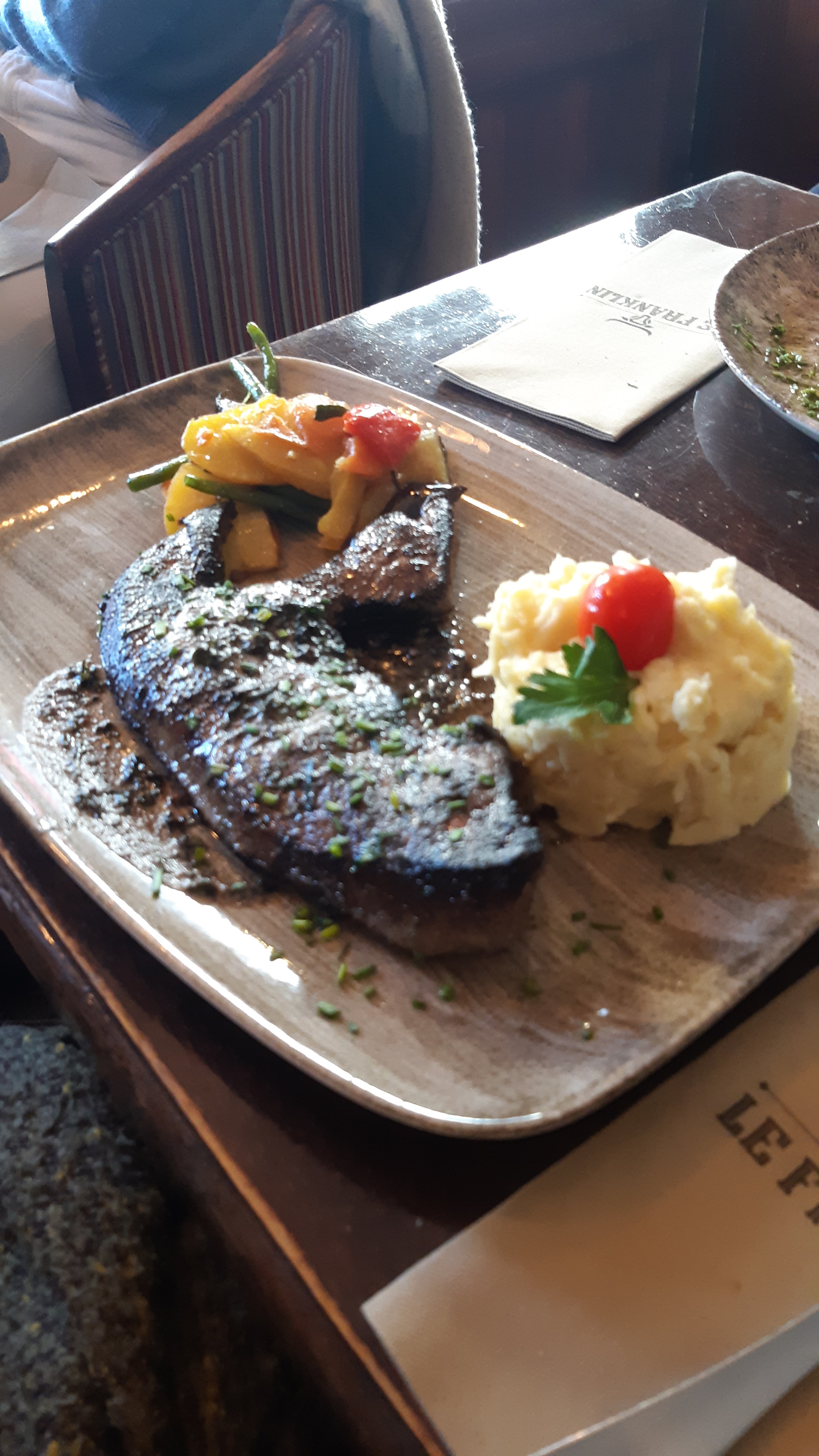 Quelle déception, dommage dommage, aligot sans fromage ( incroyable), mauvaise cuisson du foie de veau malgré une réclamation pour un deuxième service, purée sans saveur, et des rognons qui semblaient minuscules, très déçu. Le Franklin était pourtant une bonne adresse, mais ça c'était avant.