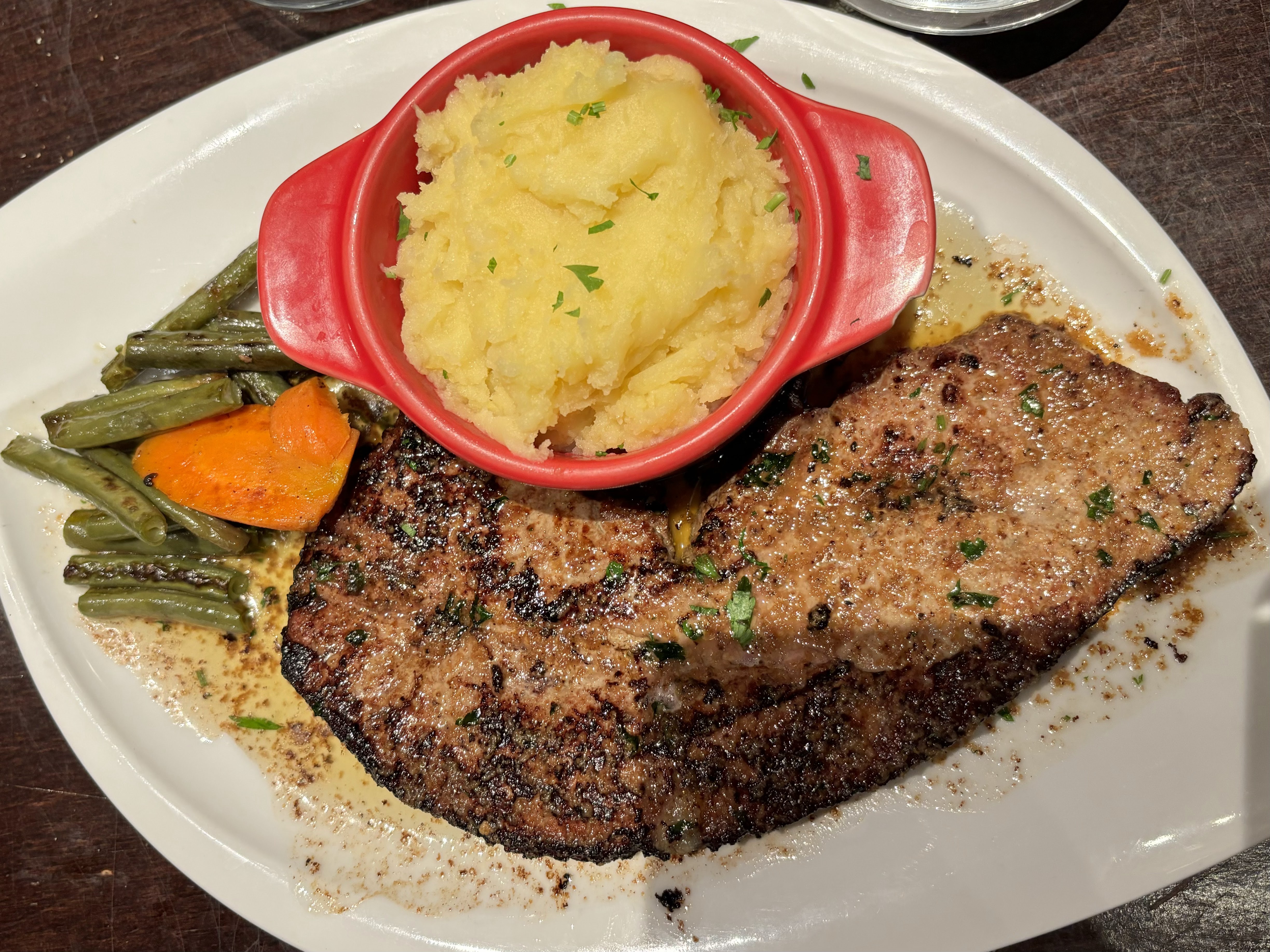 Viande très bonne, mousse au chocolat très bonne et TRES généreuse ! Et personnel très sympa ! Je recommande !