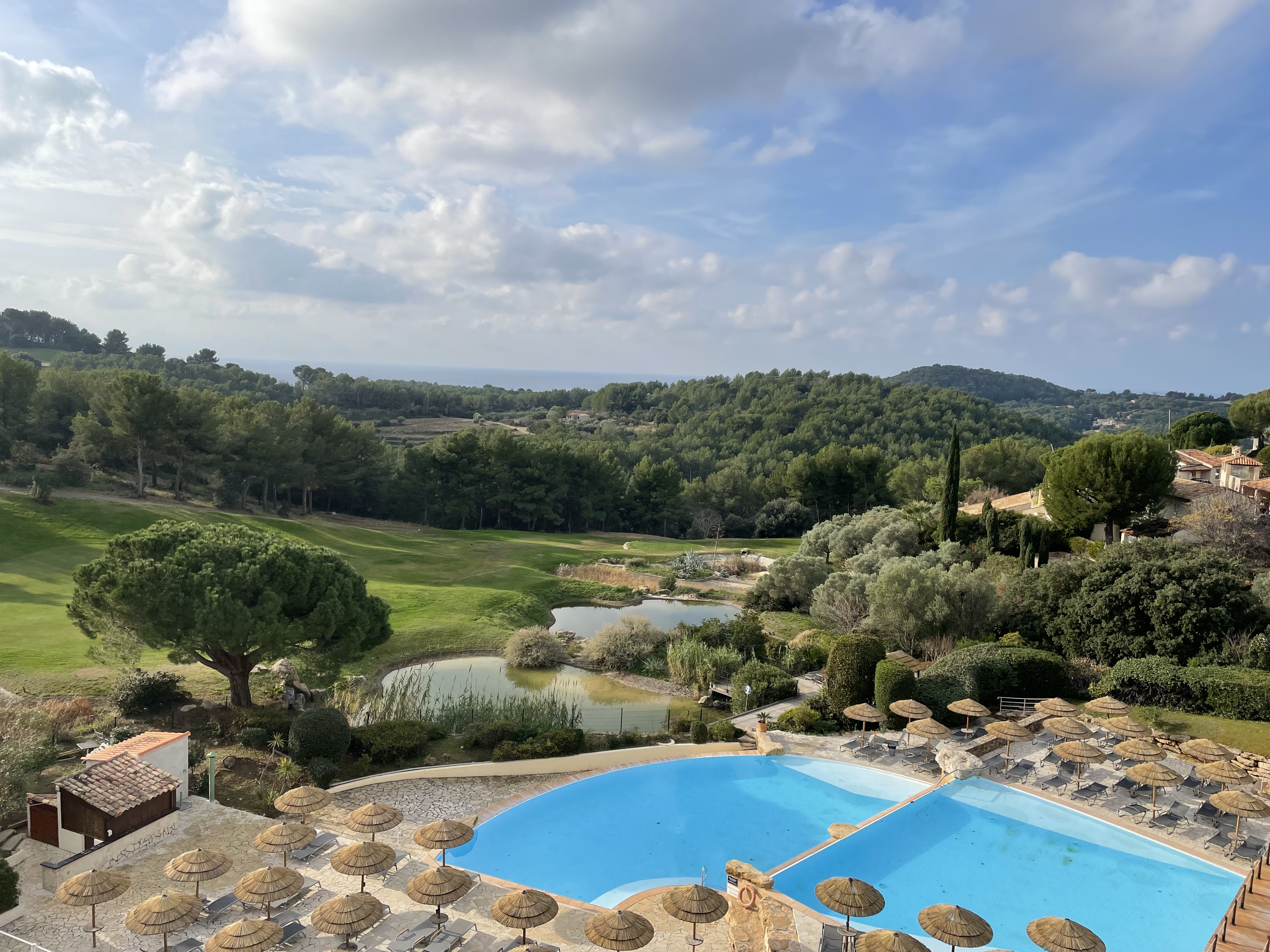 Tres bel hotel parfaitement situé. Amis golfeurs, cest le lieu rêvé. Chambres propres, sdb spacieuse, literie de qualité et le style provençal est très abouti. Petit dejeuner copieux et riche de choix. Pour finir, la piscine en trois etages est bien entretenue et chacun y trouvera son compte, famille comme couple.