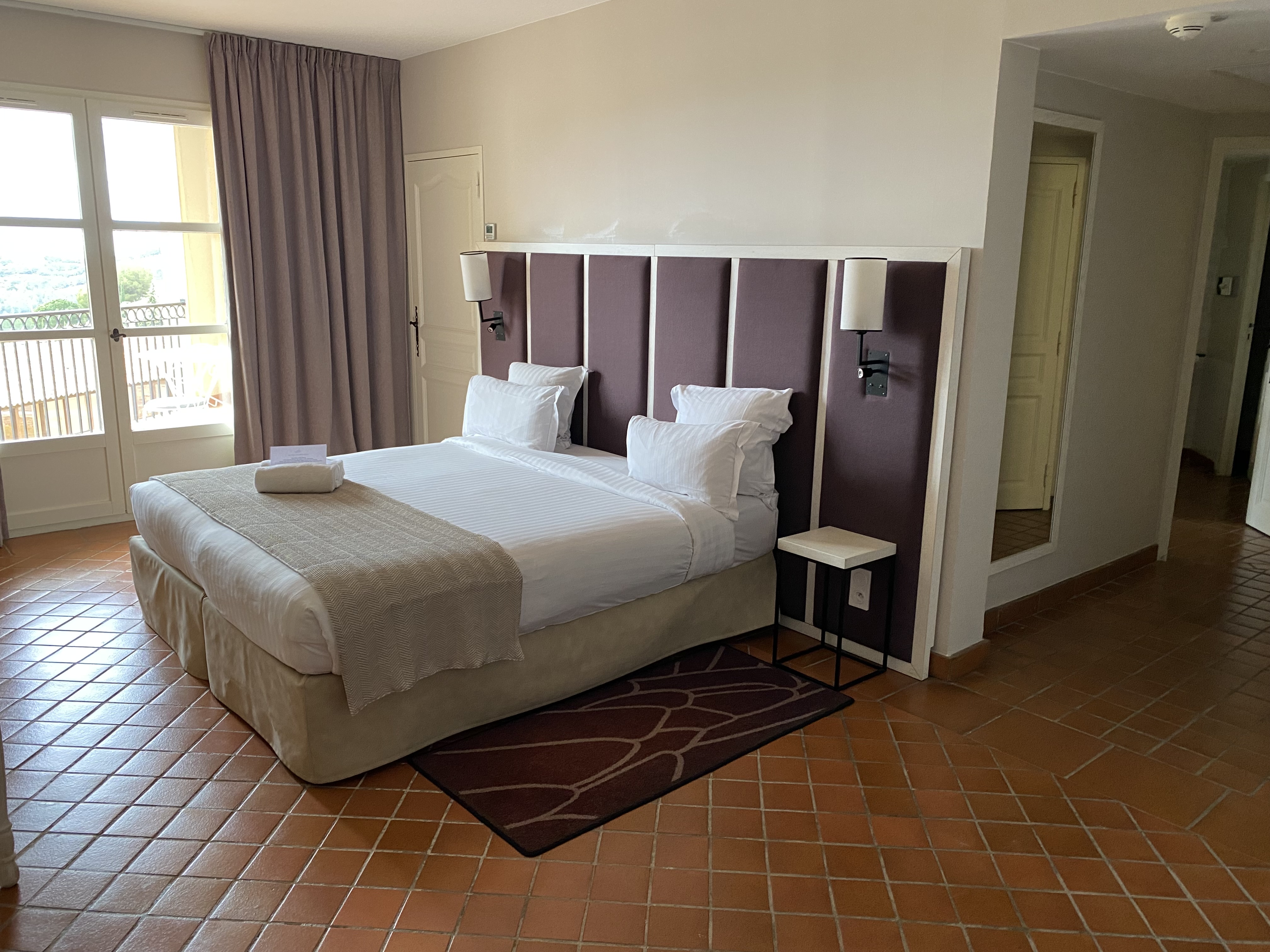 Séjour de 2 nuits en couple fin Mai. Un lieu dans un cadre splendide entouré de vignes et d'un parcours de golf. Tapis rouge à l'entrée. Concernant l'hôtel vue de l'intérieur ce n'est pas aussi réjouissant. Il y a un manque d'entretien évident. La robinetterie de la chambre, les couloirs et tapis tachés... Désordre à mon goût pour un 4 étoiles. La literie est au rendez vous. Petit bar avec 2 bouteilles d'eau quasi non réfrigéré, dommage. Nous avons souhaité boire un verre au alentour de 14h, impossible le bar n'était pas ouvert 🤐🤐. Je trouve cela inadmissible. Baignoire en espace ouvert 👍 mais également une douche fermée. Produits de toilette Sothys et Omnisens. Un balcon avec petite table et 2 chaises rustiques pas confort du tout mais une vue agréable. L'espace détente est confortable. Petit jacuzzi 2 places, piscine intérieure au moins 25m, petit sauna en bois, pas de hammam fonctionnel. Egalement un grand espace piscine extérieur avec 3 bassins spacieux et des transats avec parasol en bois. Le petit déjeuné est copieux, heureusement pour la modique somme de 25€ ! J'ai particulièrement apprécié le personnel au petit déjeuné. Un petit plus possibilité de demander une omelette personnalisée. Je suis au final mitigé sur la prestation globale de cet établissement.