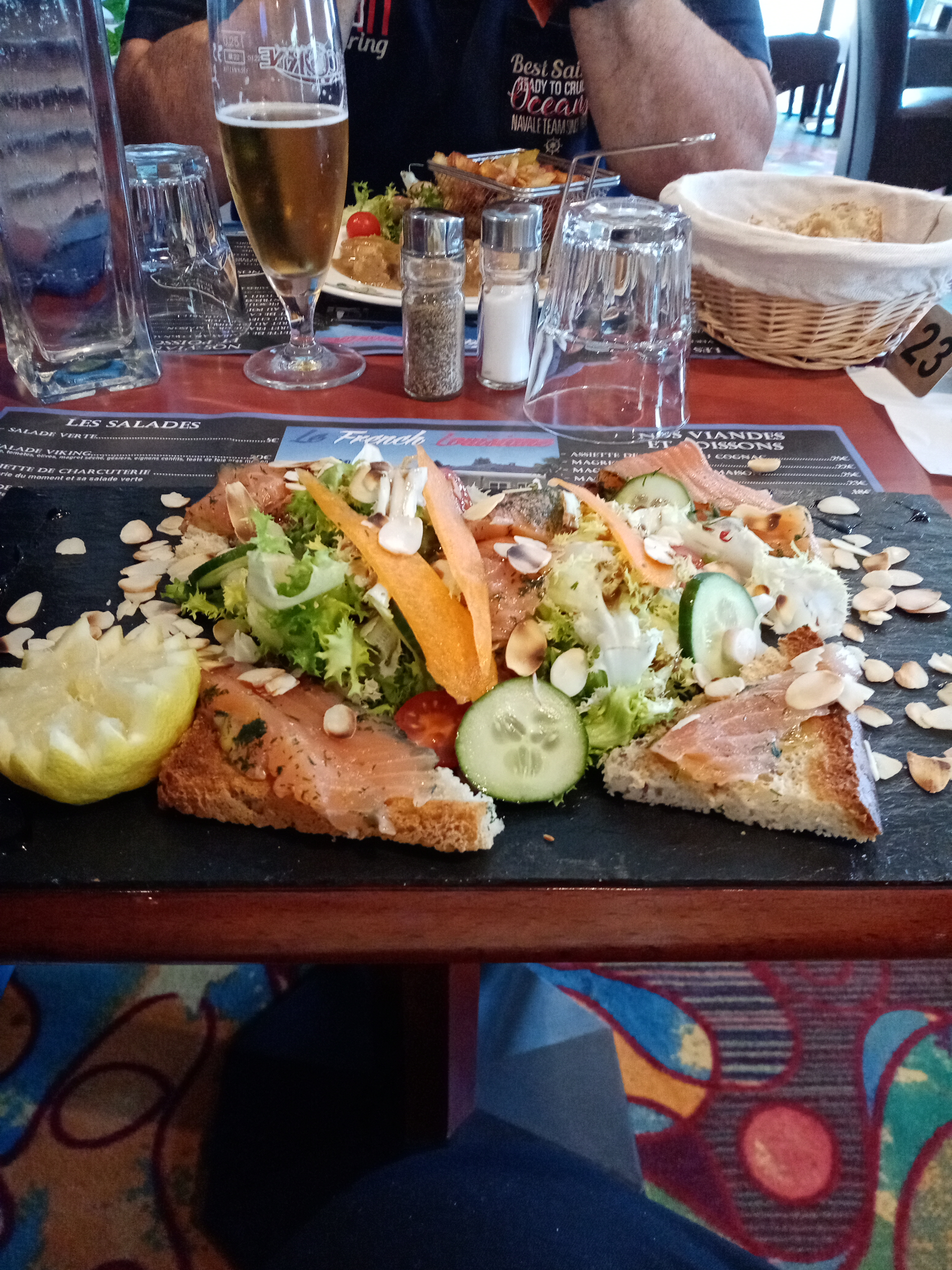 Bonjour à tous je viens vous donner mon avis sur le restaurant Le French Louisiane où nous avons dîné hier soir avec mon mari je vous le déconseille fortement sur deux menus à 35 €, vous avez en entrée une grosse salade deux petites tranches triangles de foie gras avec très peu de foie gras dessus sur le plat c'était des gambas alors 4 petites gambas se congelées pas très cuite avec 3 tonnes de salade les frites pas cuite du tout et le dessert tiramisu encore surgelé et très mauvais accueil