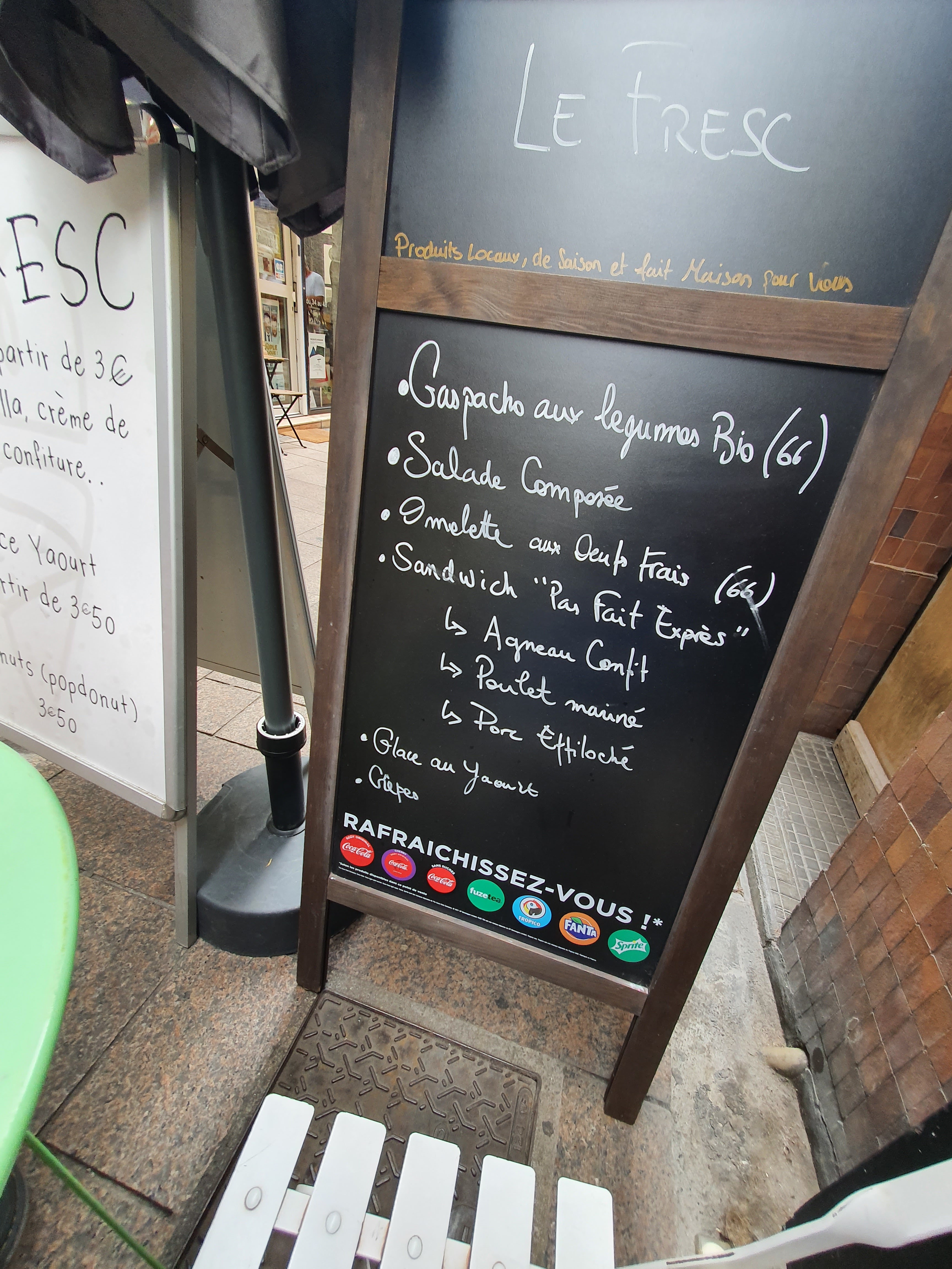Pour une pause déjeuner, ou un goûter en centre ville, je vous recommande le fresc. Tout est préparé avec des produits de saison frais et Marie a toujours des idées originales! Je n’ai jamais été déçue!