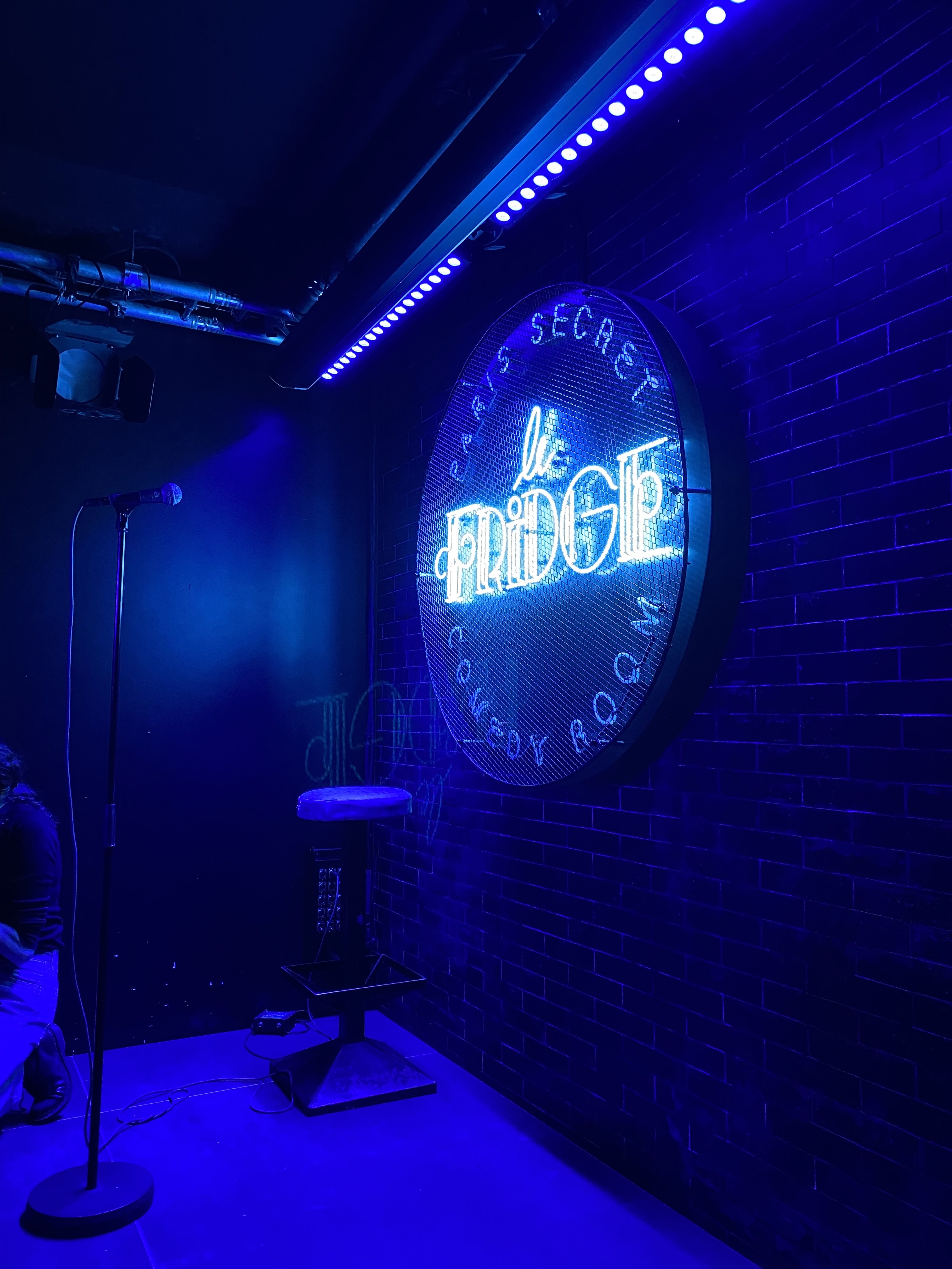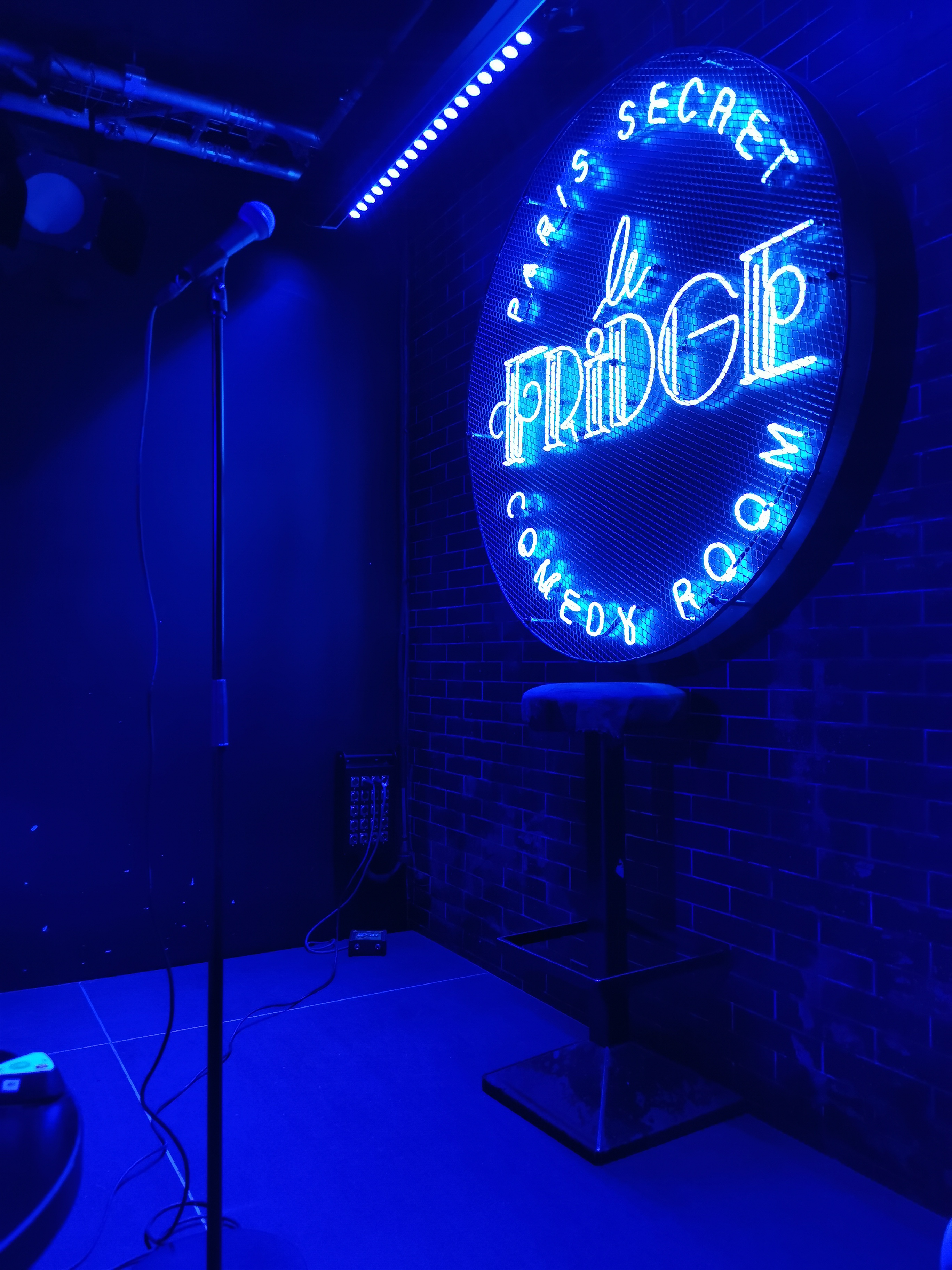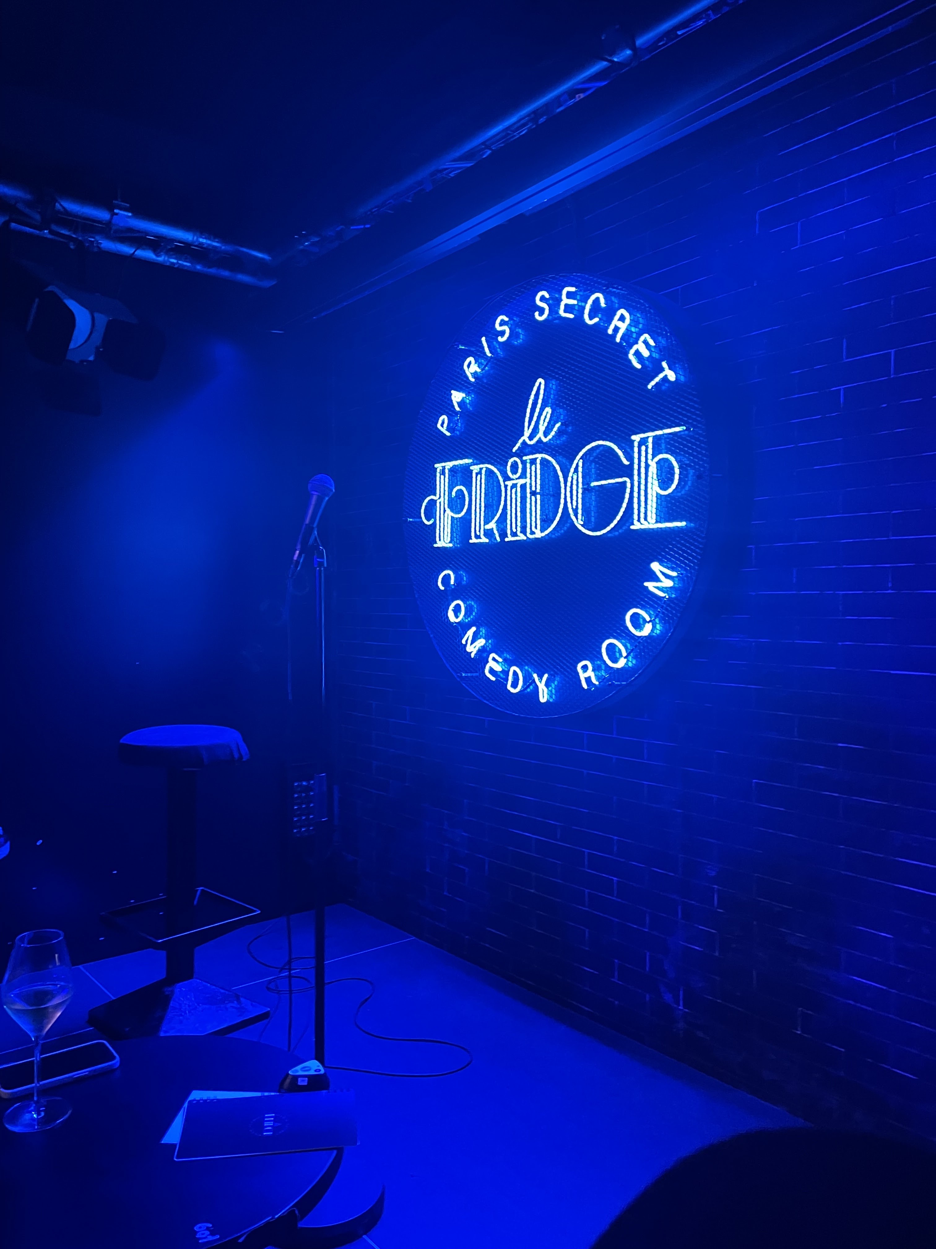 Vous voulez tester le stand up en allant au Fridge Comedy ? Allez-y vous passerez un bon moment avec de l’humour bien français ! Les bars à cocktails sont beaux, la salle est petite mais la température est bonne et une serveuse passe discrètement pour commander des boissons. Parmi les 5 humoristes, certains sont plus drôles que d’autres mais le lieu permet de tester des nouvelles blagues… Chaises sommaires et éviter d’être assis au fond si vous voulez voir la scène.. Do you want to test stand up by going to the Fridge Comedy? Go ahead you will have a good time with good French humor! The cocktail bars are beautiful, the room is small but the temperature is good and a waitress passes discreetly to order drinks. Among the 5 comedians, some are funnier than others but the place allows you to test new jokes... Sketchy chairs and avoid being seated in the back if you want to see the stage.