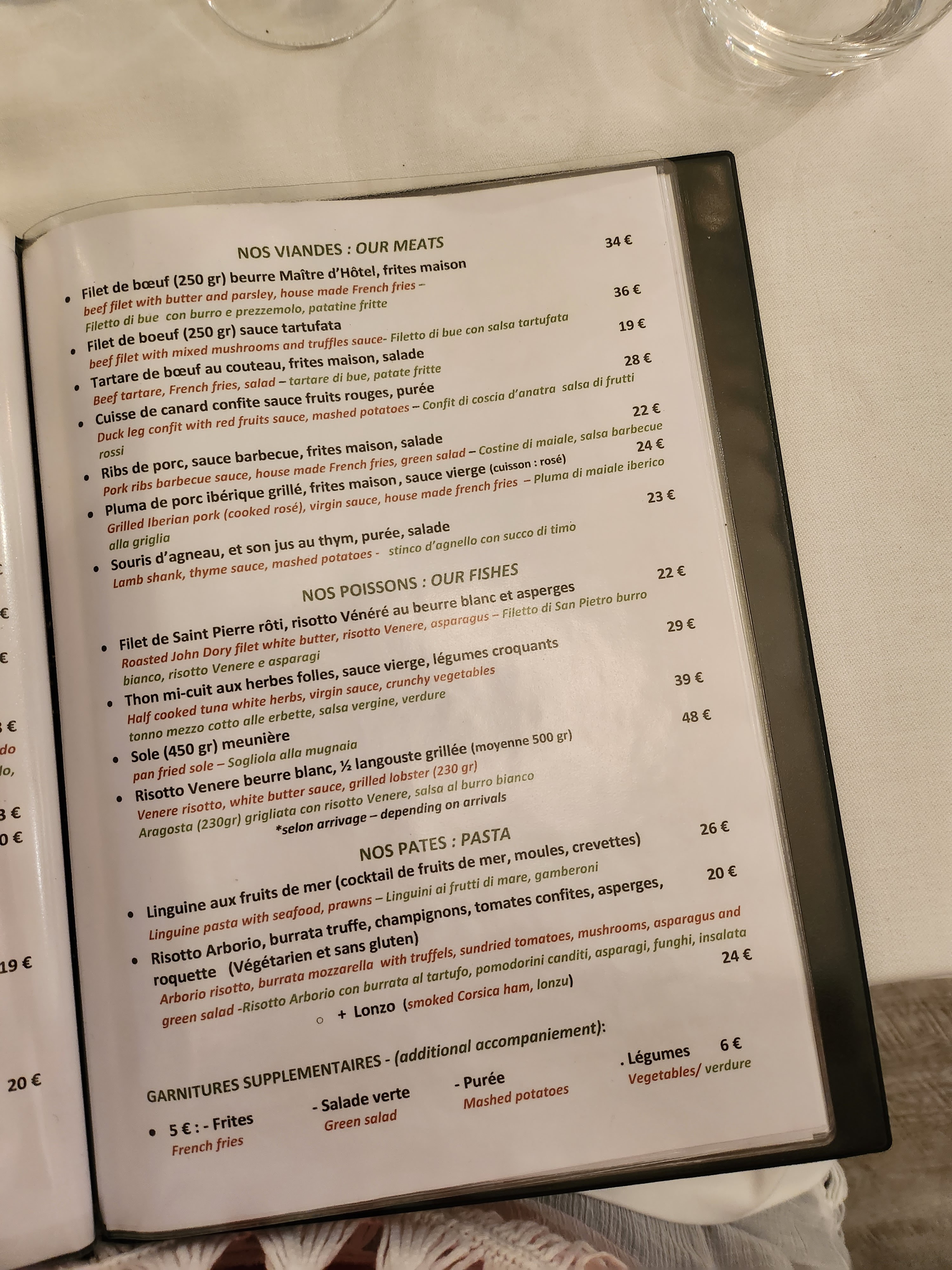 Le menu du soir est excellent. Pour 21e entrée plat dessert, on trouve difficilement mieux dans le vieux Nice! On a pris des escargots en plus de l'entrée: une tuerie! Une très bonne adresse pour manger français!