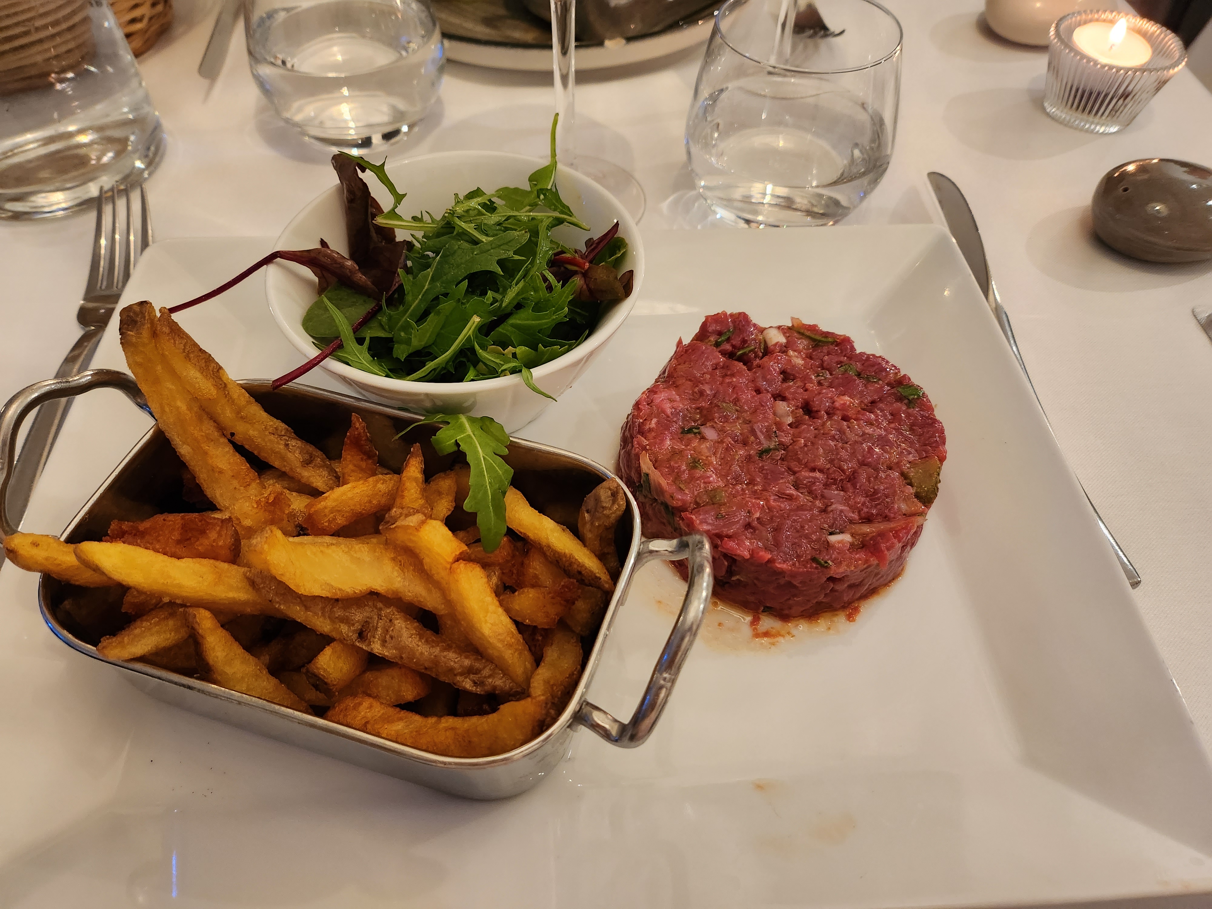 Restaurant sympathique, bonne cuisine, néanmoins le tartare de boeuf a trop de sauce couvrant le goût de la viande. Accueil assez froid.