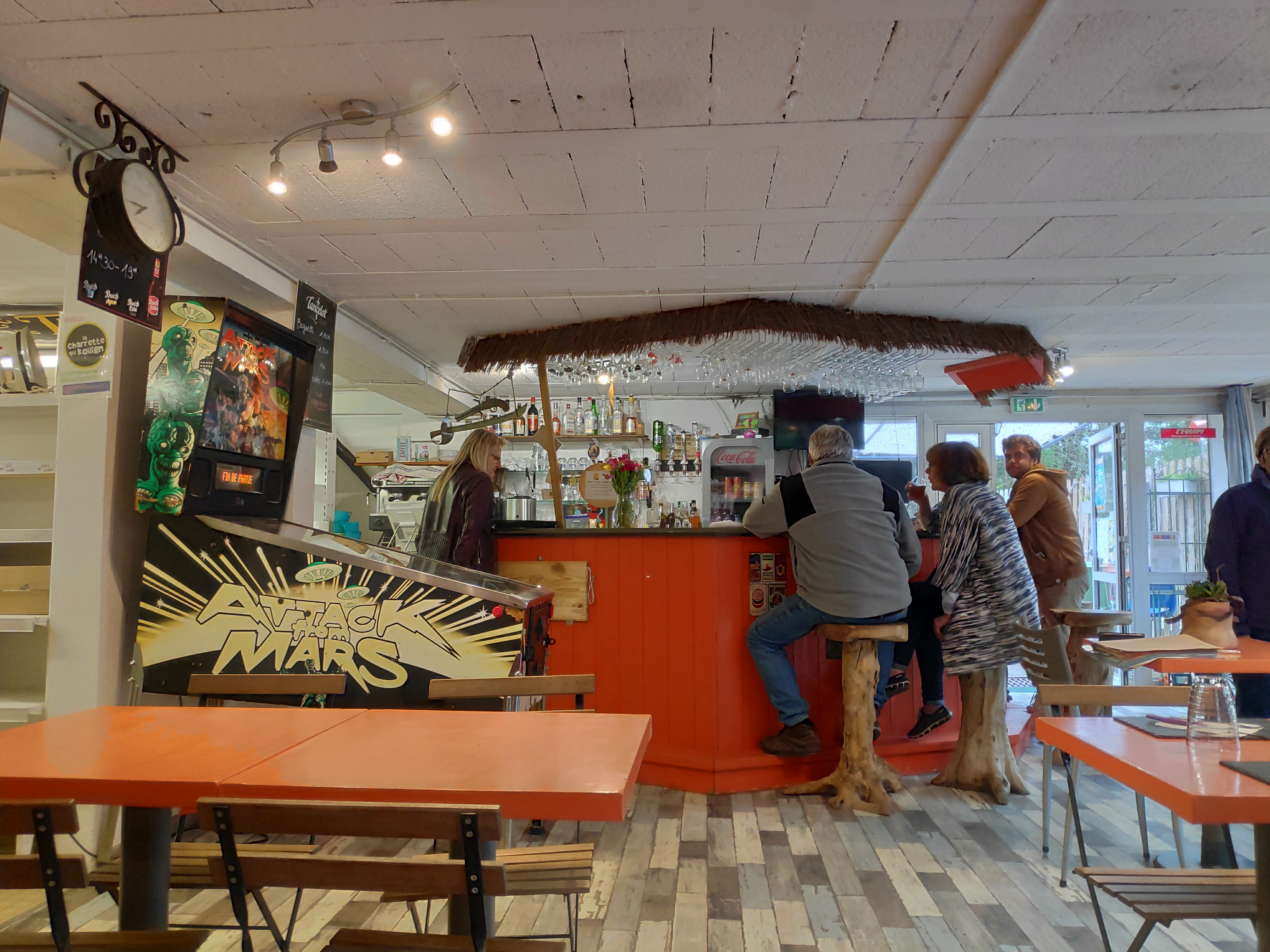 Un joyeux mélange entre bar, restaurant, épicerie, boulangerie, salle de concert et salle de jeu. C'est tout un concentré de place de village, et le Roaliguen respire la bonne humeur grâce à l'équipe. Merci à vous!