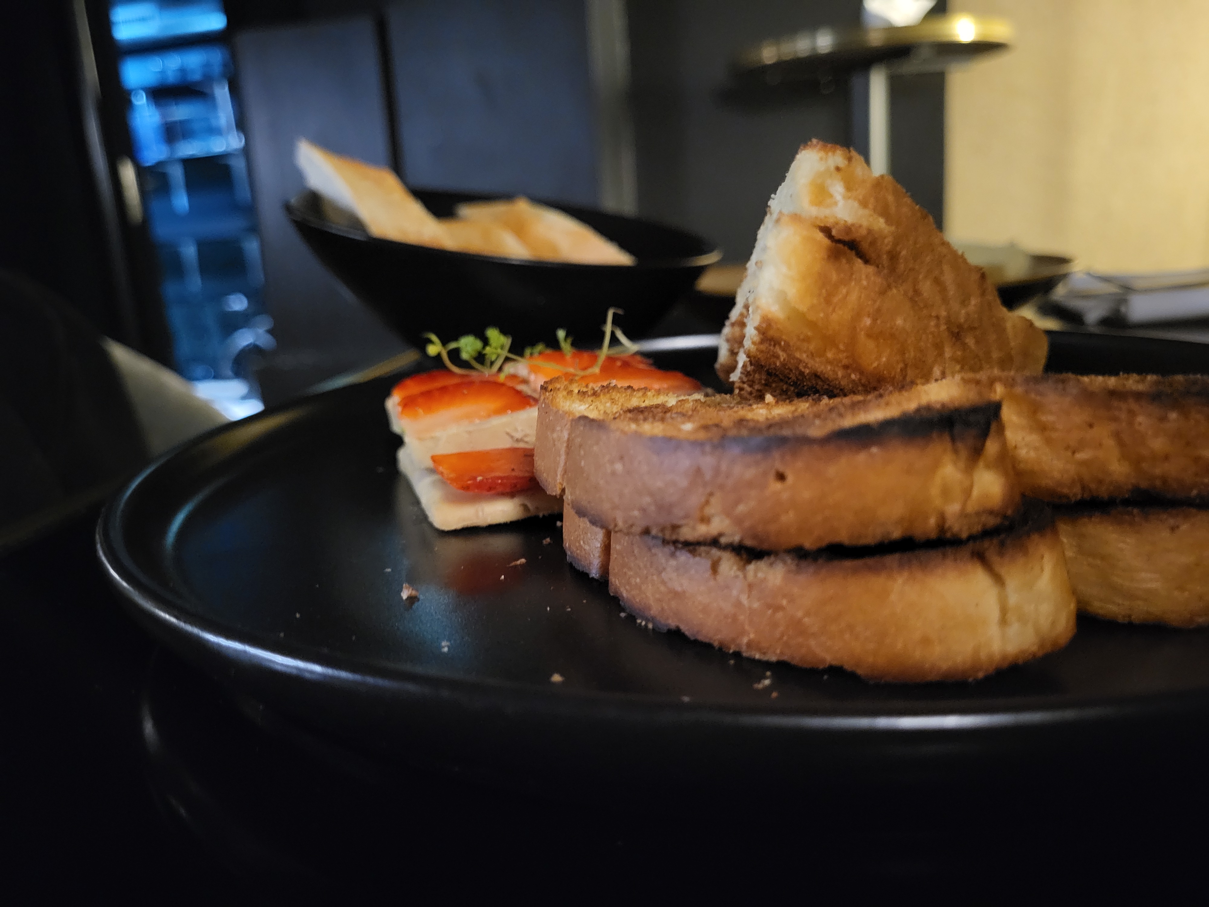 Cocktail intéressant mais les « plats » c’est clairement du vol .. la salade césar vous avec un cœur de laitue (95%) et le reste de « poulet » et « sauce » les « gaufres » ne sont pas bonnes, la Burrata sans goût … franchement autant proposer des chips et cacahuètes … heureusement que le mac do n’étais pas loin