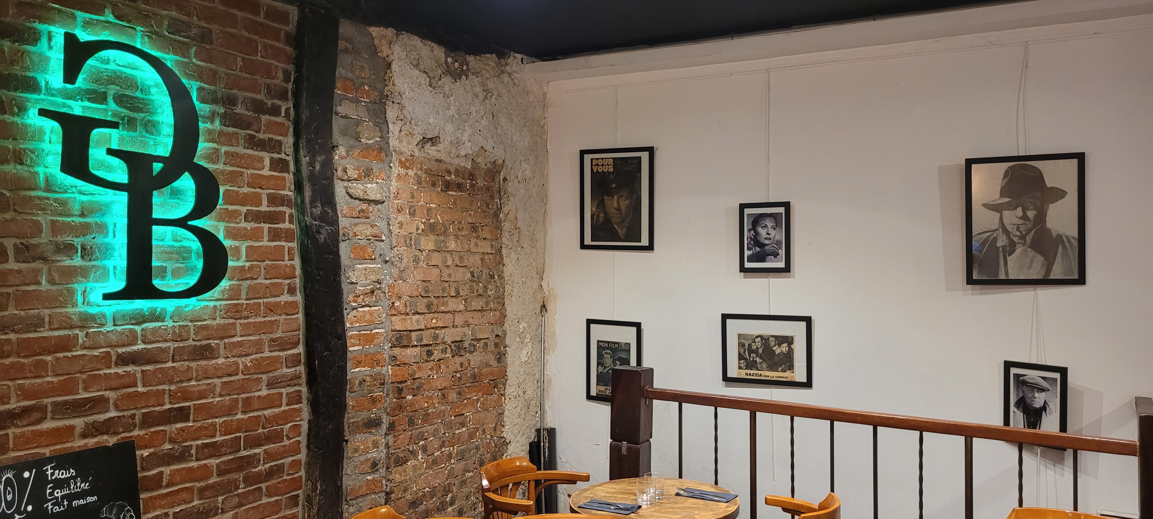 Dans un tout petit quartier de Montmartre, il est bon de s'asseoir au soleil pour déjeuner ou de prendre un French Skinner romantique. Des mecs sympas au service et comme affiches de films funky Sur les murs de Jean Gabin