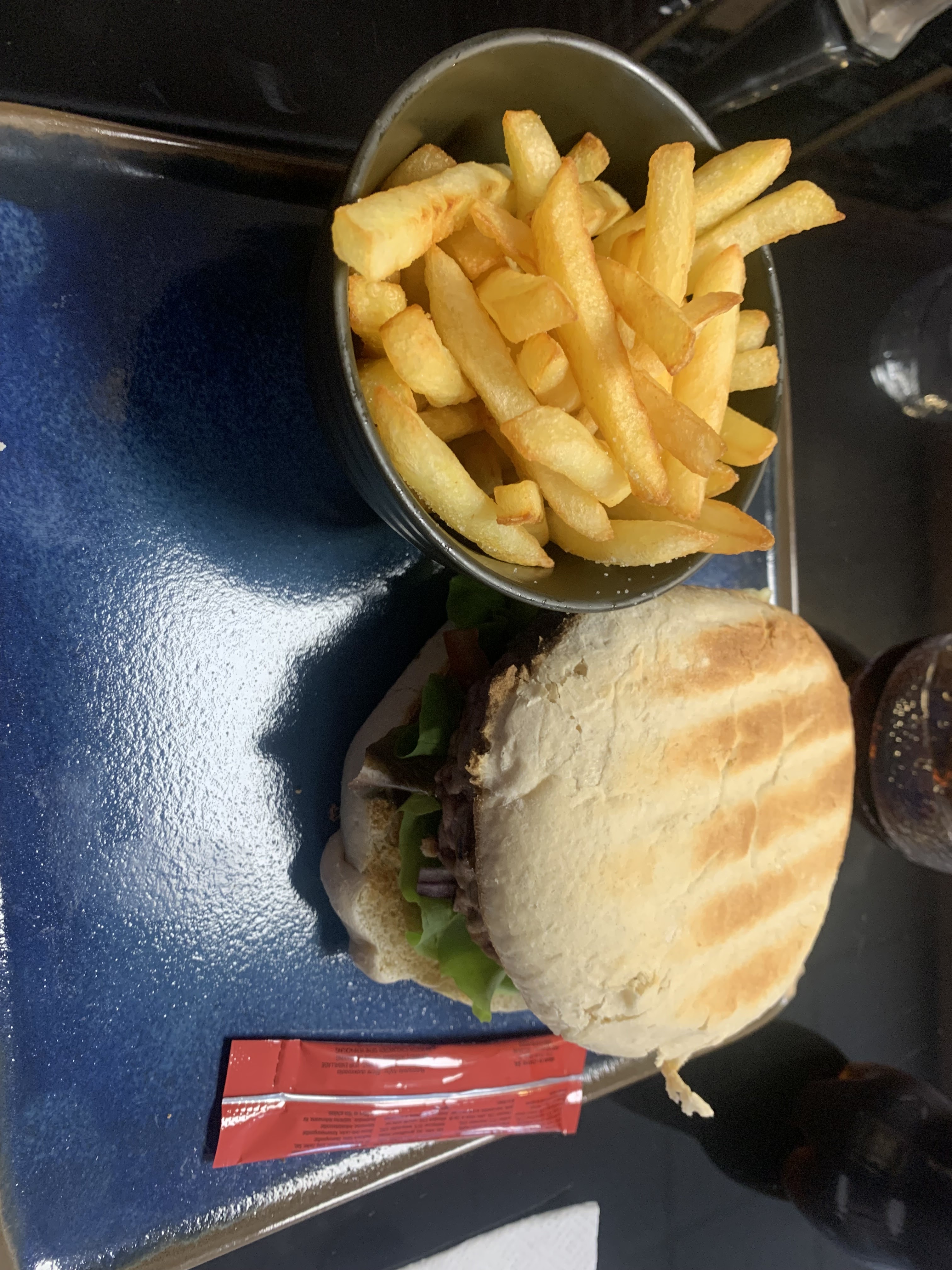 Je fréquentes ce retaurant depuis 2 ans à midi, les plats ont vraiment régresser niveau qualité, surtout depuis la hausse des prix, avant les plats étaient plus copieux, plus juteux, les frites faites maison. les quantités ont de plus diminuer dans l assiette. 18,90 pour un fish ans chips, juste un gros poisson pané comme l on peut trouver dans les supermarchés avec une poignée de frites surgelés, petite assiette même pas de salade, pas même une décoration. . j avais l impression d être devant l assiette que je fait pour mes enfants. le poisson était même encore un peu cru à l intérieur.. vraiment déçue niveau qualité prix ça ne vaut pas le coup. le Burger italien que j avais l habitude de prendre est devenu très sec.. dommage. j apprécié néanmoins les propriétaires des gens très sympathiques et souriants. et les gens qui travaillent à cote continue à venir donc je ne M inquiétés pas pour eux.