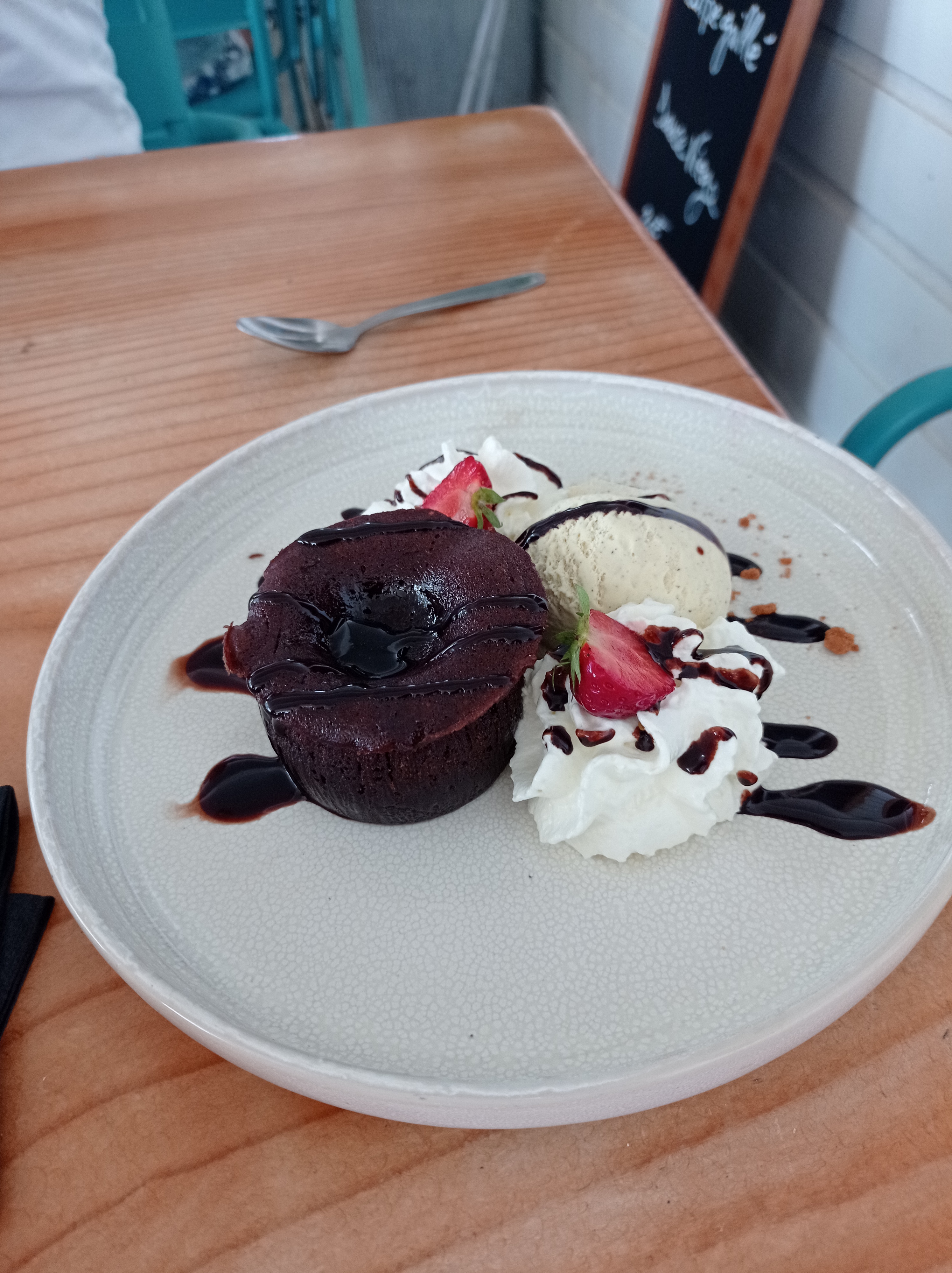 Loin des bords de plage bondés, joli restau bord du lac, desserts maison excellents et thon délicieux ! Idem tapas en guise de repas !