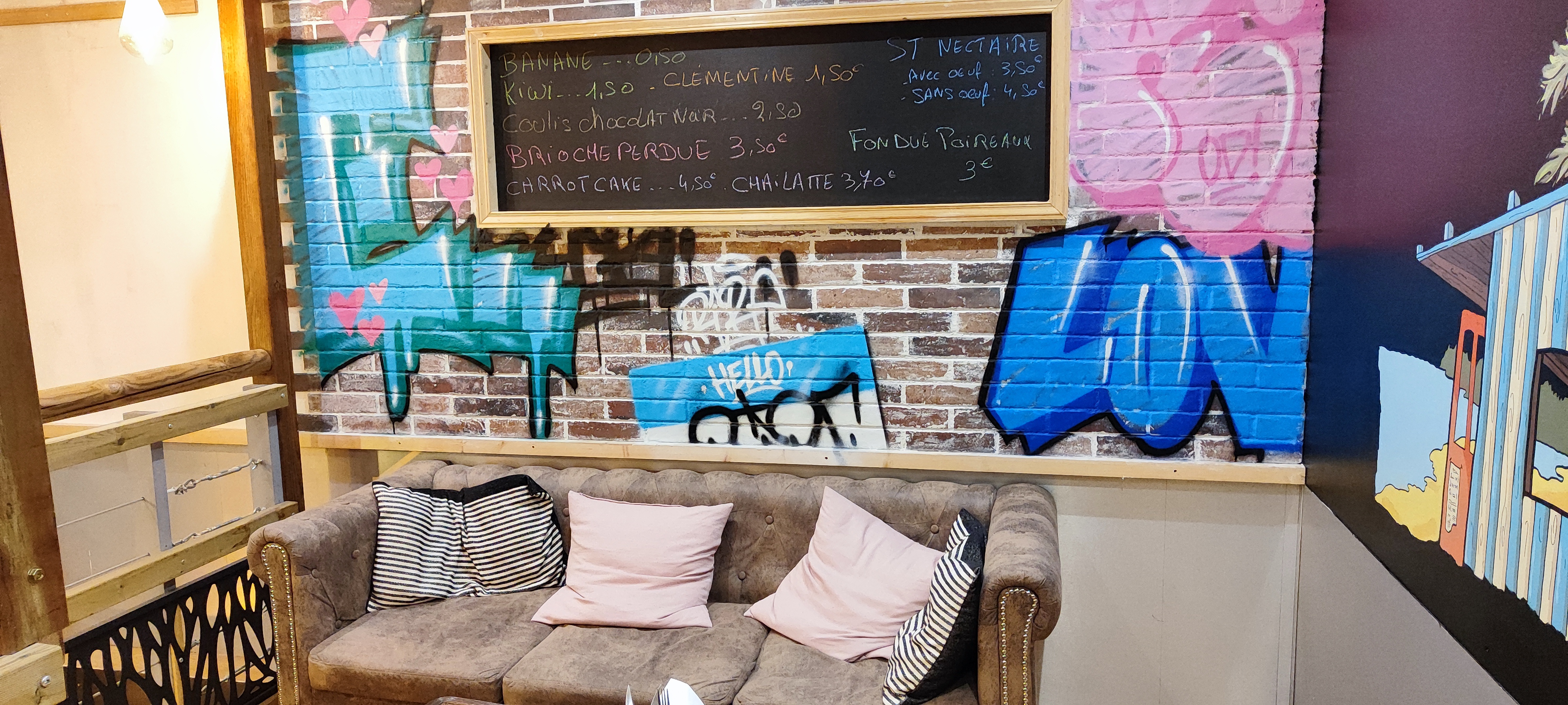 Dans une ambiance jeune et dynamique, au détour d'une balade dans le marché des halles, heureuse découverte de cet endroit qui à la mérite de proposer une carte simple mais gourmande. Avec des produits de saisons, une carte qui évolue au fil du temps et toujours en gardant sa bonne humeur c'est un endroit parfait pour passer un moment de convivialité. En famille, avec des amis et même en solo c'est un plaisir de revenir à chaque moment. La décoration pop urbaine convient à tous les âges sans agressivité grâce aux couleurs douces. Méfiez vous, les assiettes sont bien garnis et on pourrait en avoir les yeux plus gros que le ventre. Son succès les weekends mérite de s'y prendre en avance pour avoir une table.