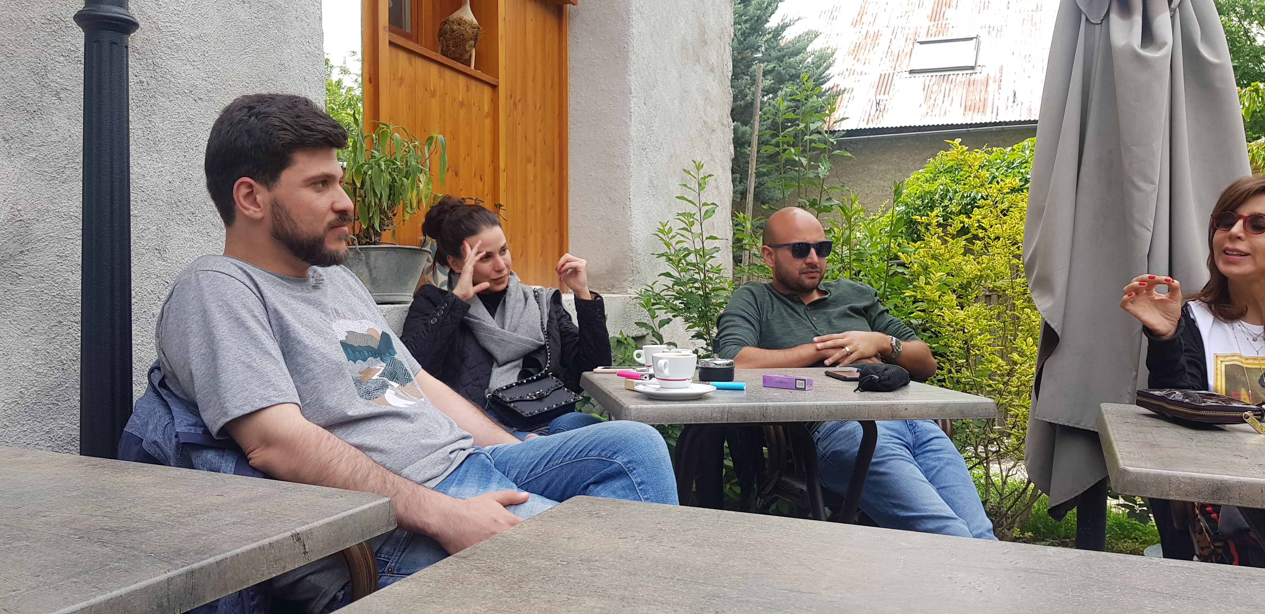 Vous mangez dehors dans un petit jardin, quelques tables, une cuisine et un service excellents, de la bonne nourriture et un excellent emplacement