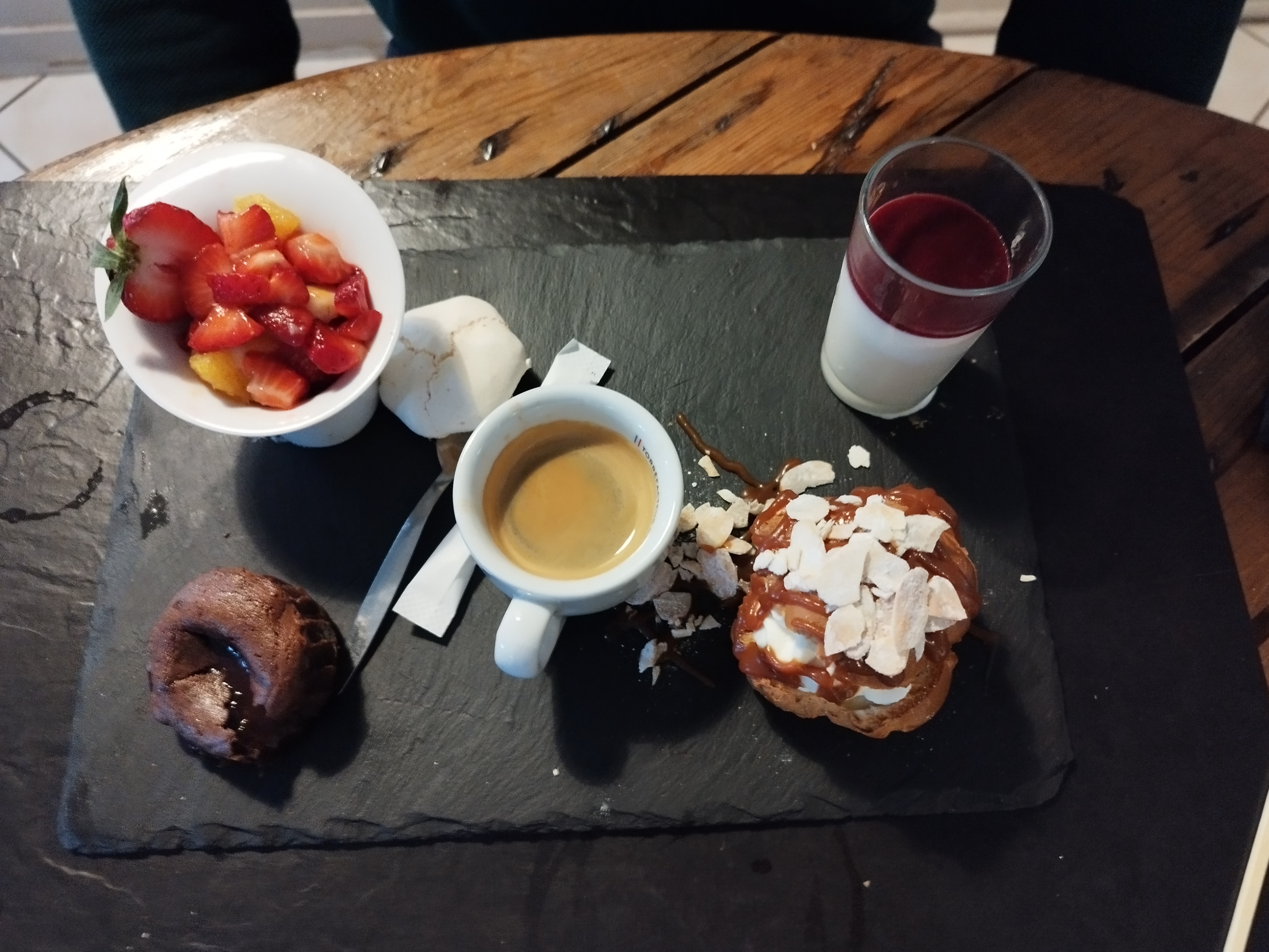 Très bon repas rapport qualité prix excellent service très agréable serveur et serveuse très gentil... Je conseil.... Viande très tendre profiteroles en grande quantité très bon On reviendra avec plaisir