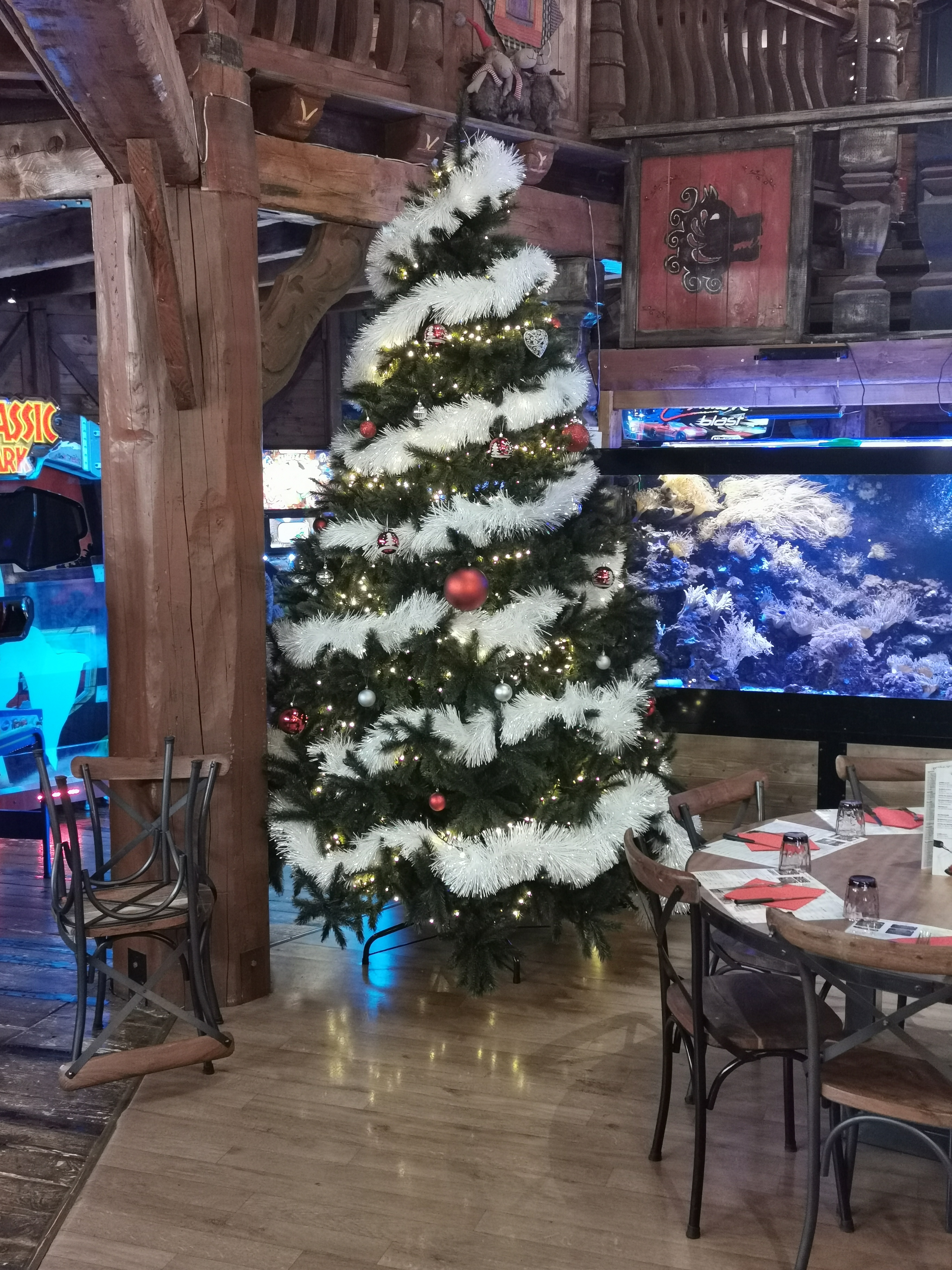 J'ai pas trouvé la qualité des plats extraordinaire surtout pour le prix qui lui est nettement supérieur à tout ses concurrents qui servent le même genre de carte. Le décors est beau mais il se suffit a lui même car il y'a aucune ambiance. je m'explique : vous êtes dans un bateau de pirate, les serveurs ne sont même pas habillé sur le thème, aucune musique, il pourrait y avoir par exemple des simulation de combat entre pirate... etc, des animations pour enfants... Ensuite il faudrait un minimum que les serveurs sachent ce qu'il y'a sur la carte. par exemple sur l'entrée foie gras elle es servi avec 3 confiture différents soit disant confit oignons, figue et framboise (reponse du chef apres que j'ai demandé au serveurs de se renseigner car ma femme est allergique a certains fruits) pour finir c'était Framboise, peche et abricot. Ma femme a fait une crise d'allergie en rentrant car elle es allergique a l'abricot et a la peche.