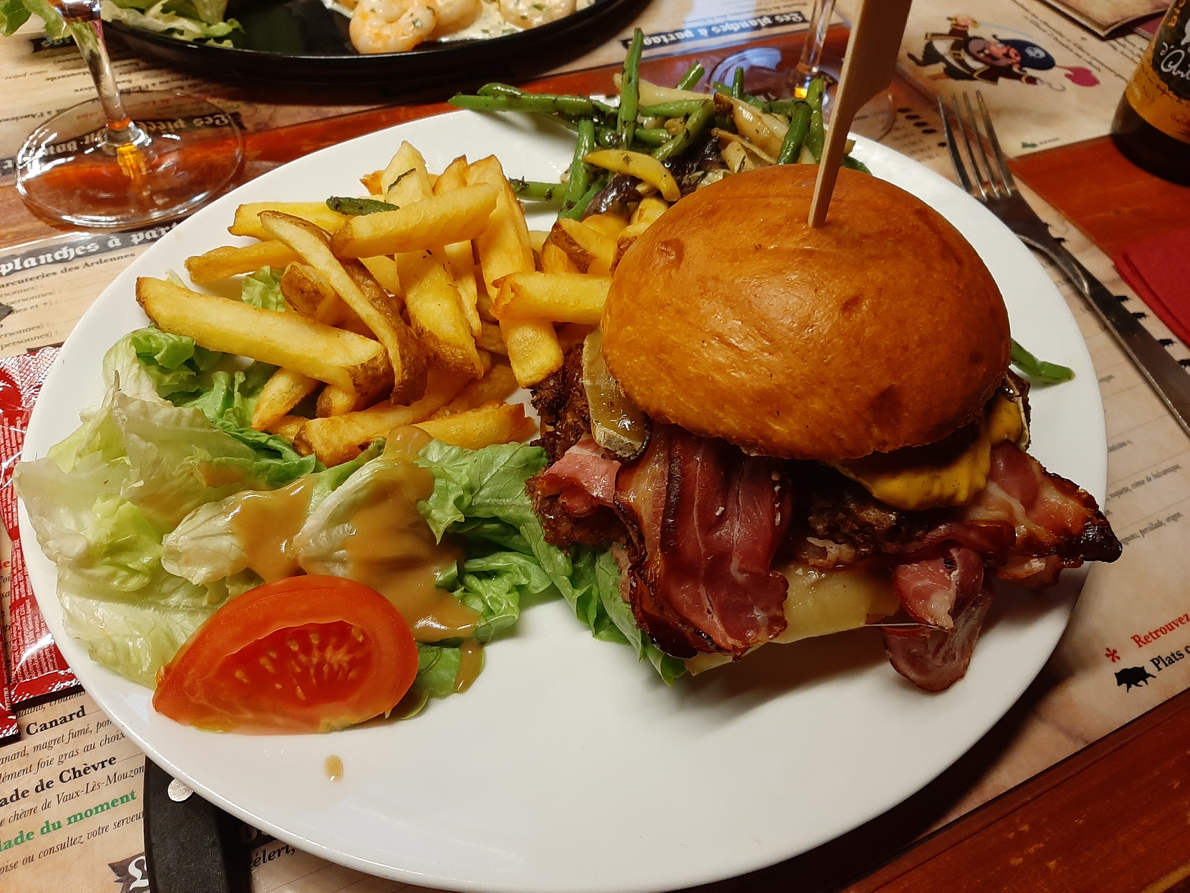 Bon restaurant thématique pirate, le décor est plutôt réussi, le service accueillant et efficace quoique un peu long pour la prise de commande, mais surtout la nourriture est bonne, copieuse et bien cuisinée. La carte indique les plats locaux et spécialités du restaurant. Le Burger Ardenais était délicieux, seul bémol les oignons confits bien trop sucrés. Restaurant qui fait un peu usine mais certaines tables sont un peu à l'écart dans des alcôves ce qui est appréciable. On y a passé un bon moment.