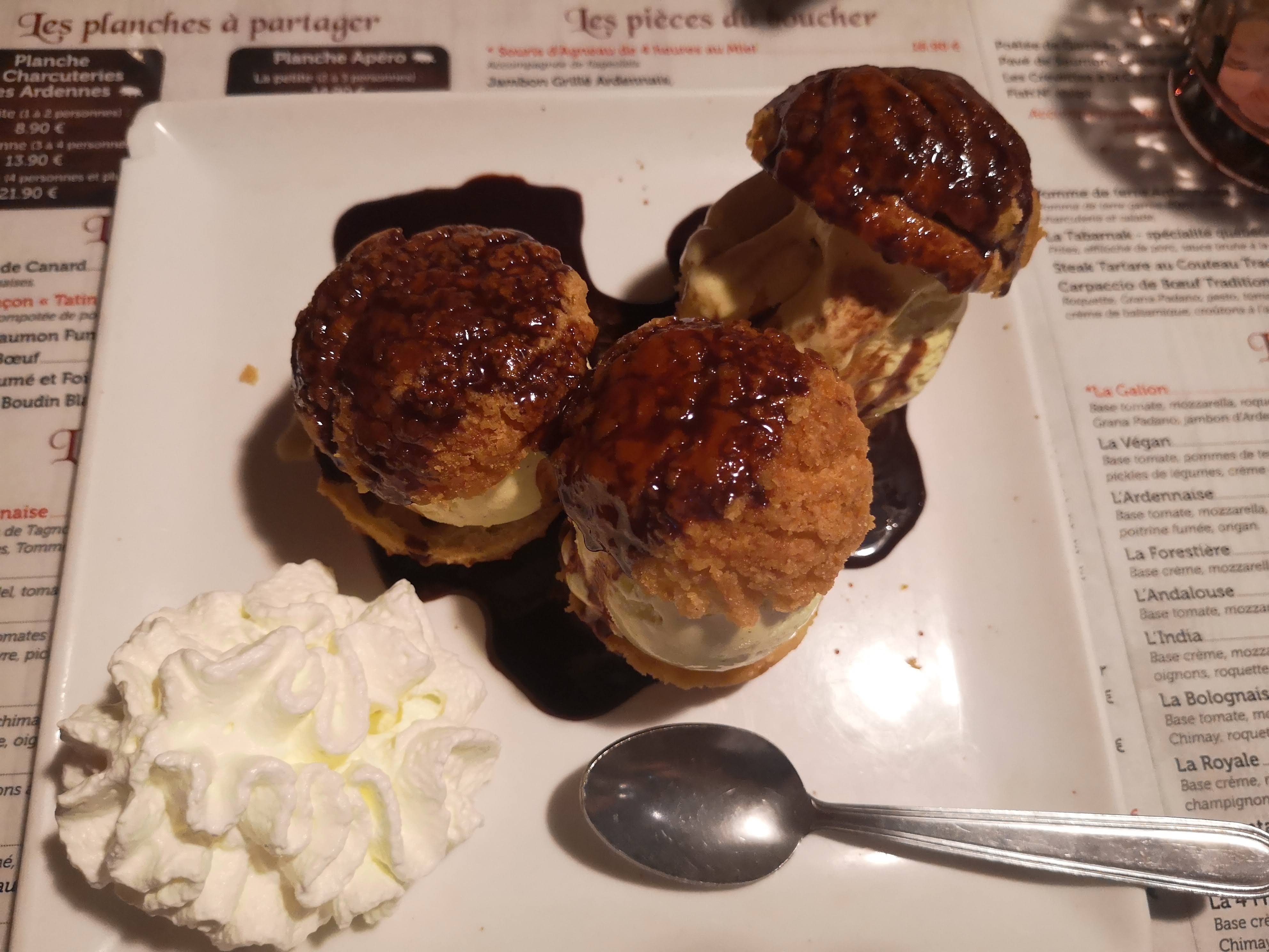 A chaque fois je prends les moules sauce roquefort frites , excellente bien chaude copieux ,mais le bémol c'est que le roquefort et léger,le goût est moins prononcé que avant dommage ....les profiteroles sauce chocolat excellente .Le service à table très sympas ,avec le sourire...bon moment 👃😀