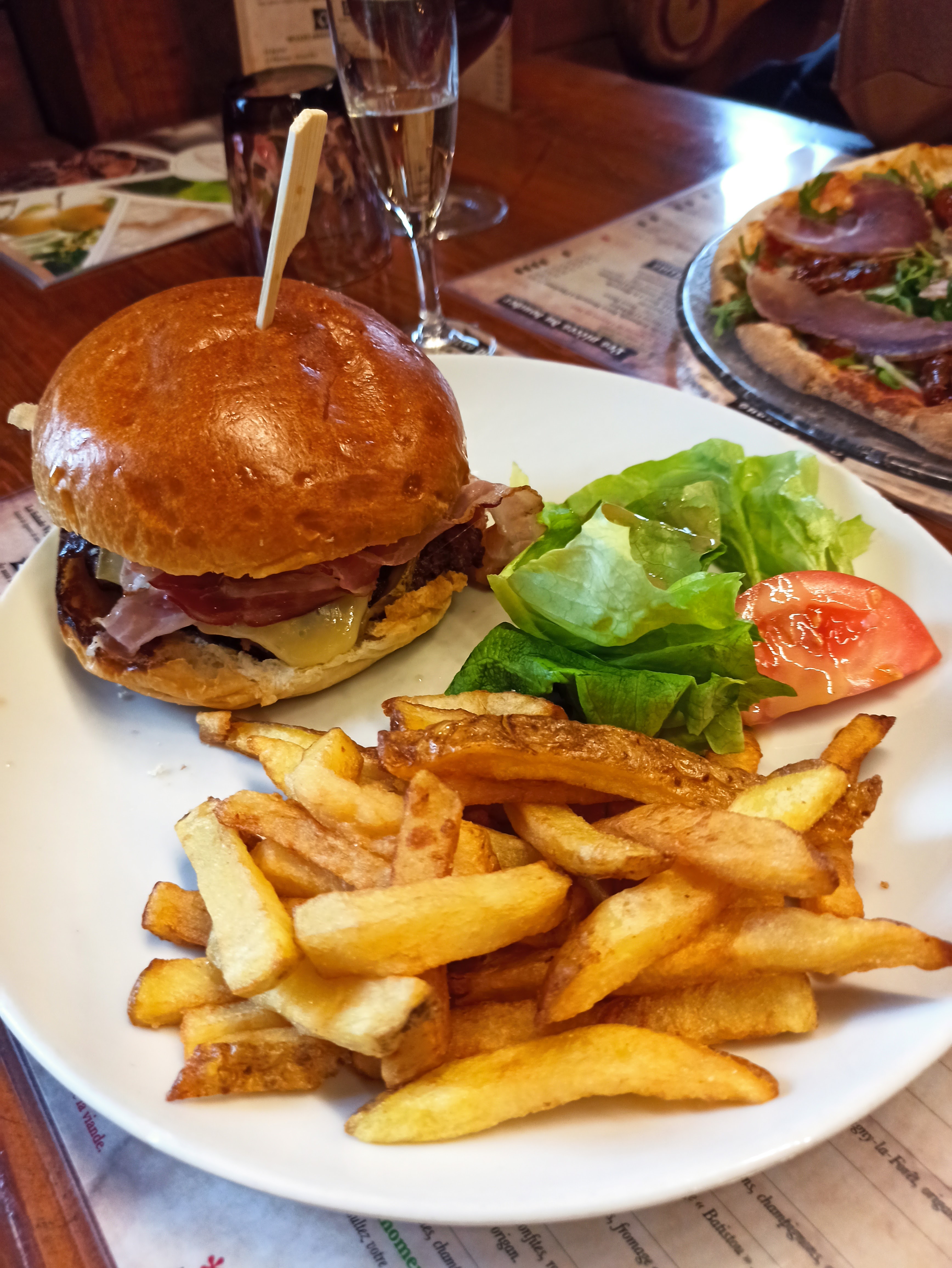 Restaurant avec un cadre sympathique L’accueil et le service est correct La carte propose des hamburgers, pizzas, poissons, viandes, salades etc… il y en a pour tous les goûts Le burger choisit très bon, avec une viande cuite parfait et un pain moelleux Les frites qui l’accompagnent sont très bonnes et maison 😉 Les prix sont corrects, comptez en moyenne 20 à 25€ avec un plat, boisson et café