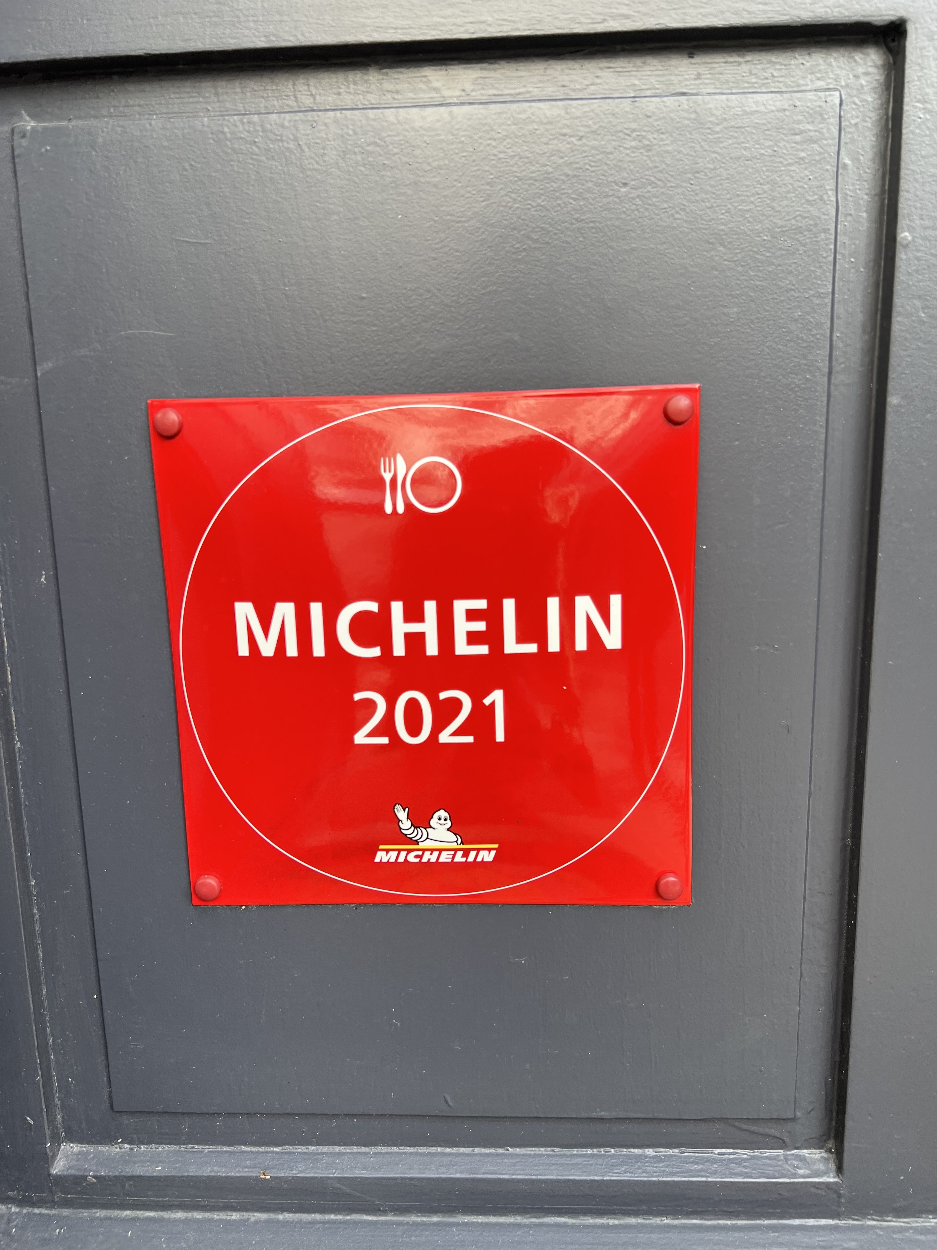 Vue de l'extérieur, la façade du restaurant assez ordinaire, petit, places assez serrées, mais quelle cuisine gastronomique ! Personnel très aimable et efficace. Nous nous sommes bien régalés !!