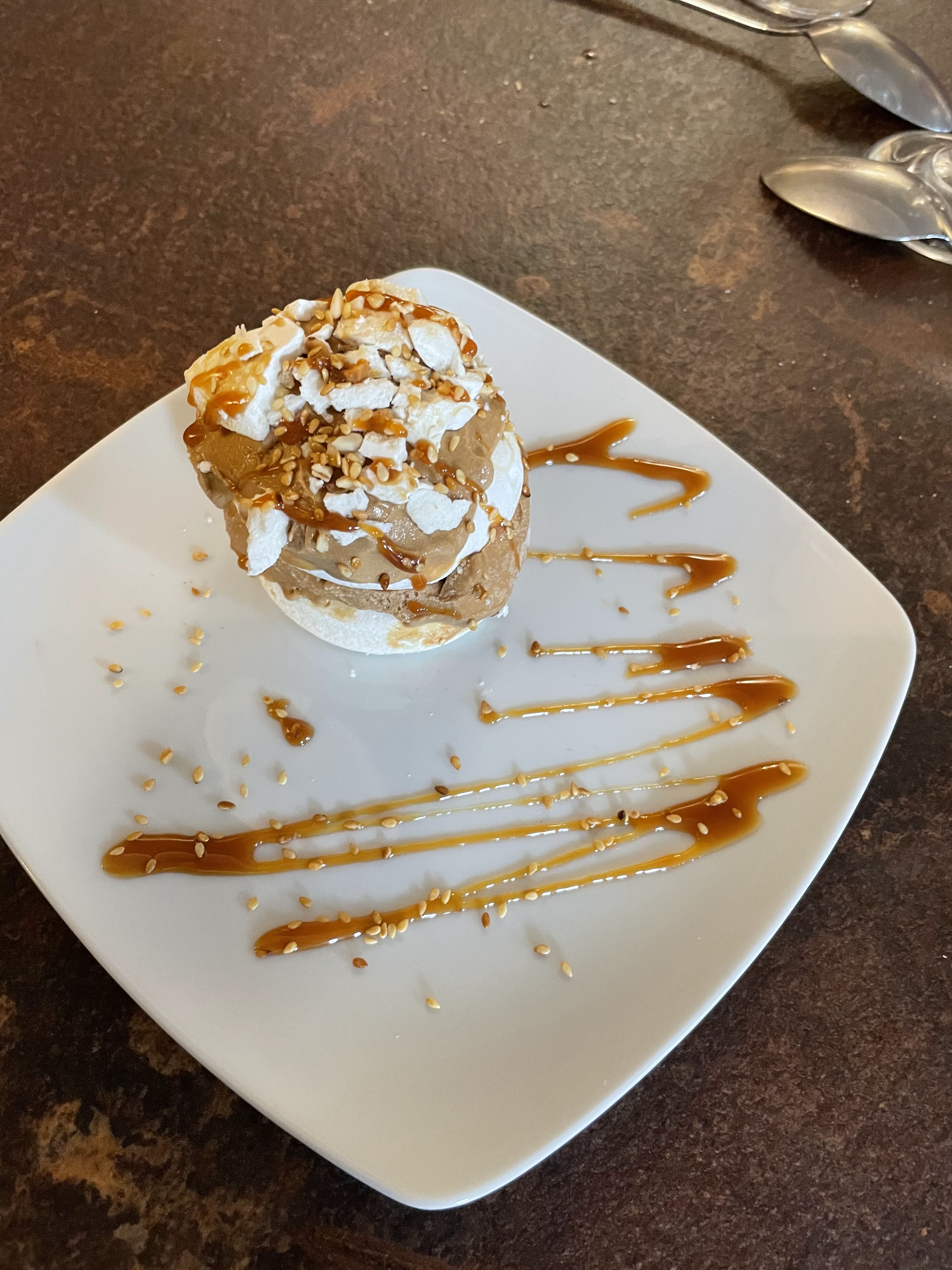 Très bonne expérience. Des plats savoureux, des desserts maison gourmands, personnel très prévenant. Tonnelle accueillante. Déco intérieure chaleureuse. Merci 😊
