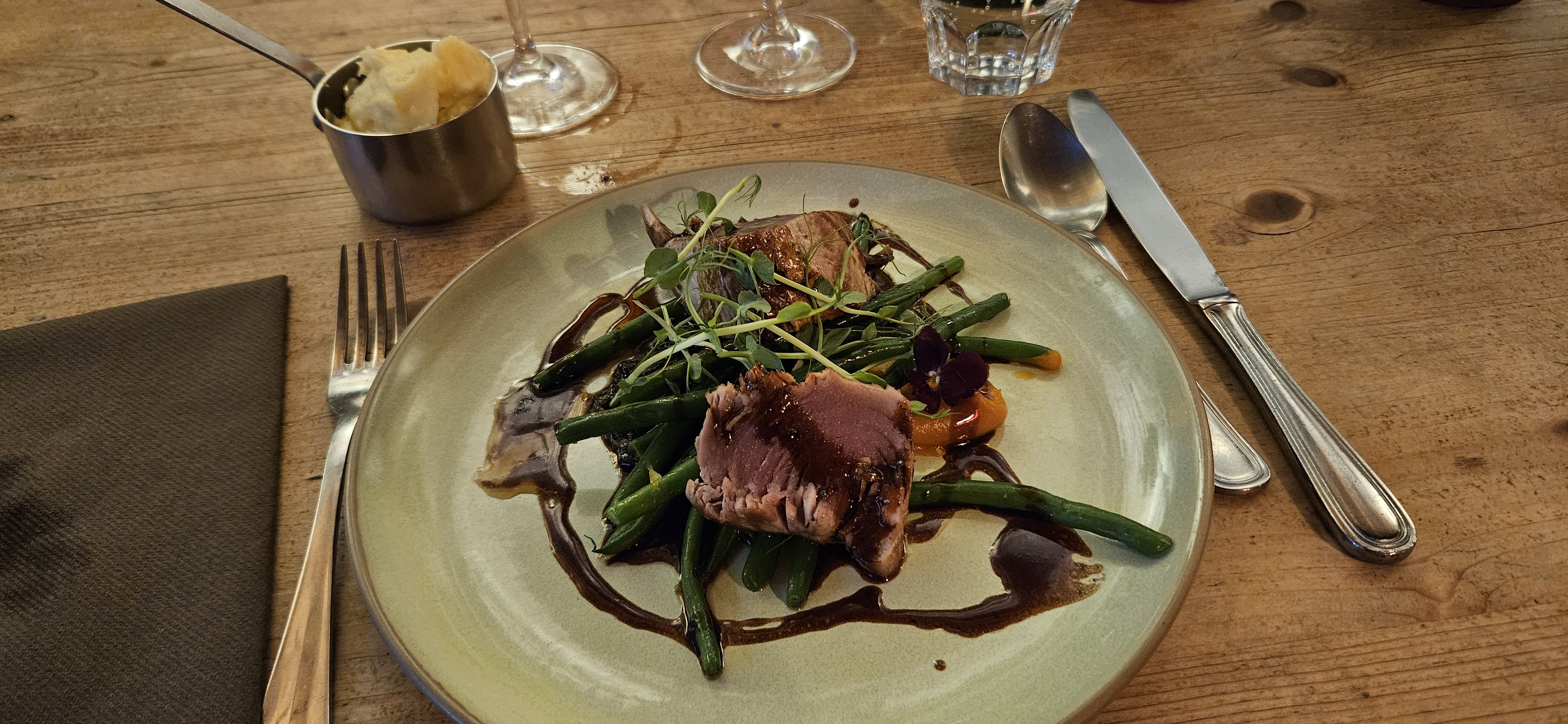 Diner à 4 le 24/8 en terrasse. 4 Entrée œuf mollet servi sur ratatouille. Agréable mais l œuf est dur et non mollet et le plat est froid. Magrets de canard commandés saignants mais réceptionnés bien cuits. Ç est bon mais c est loin, dans le détail, d'etre de qualité gastronomique. Dommage, les produits dont de qualité à la base et le cadre est agréable.
