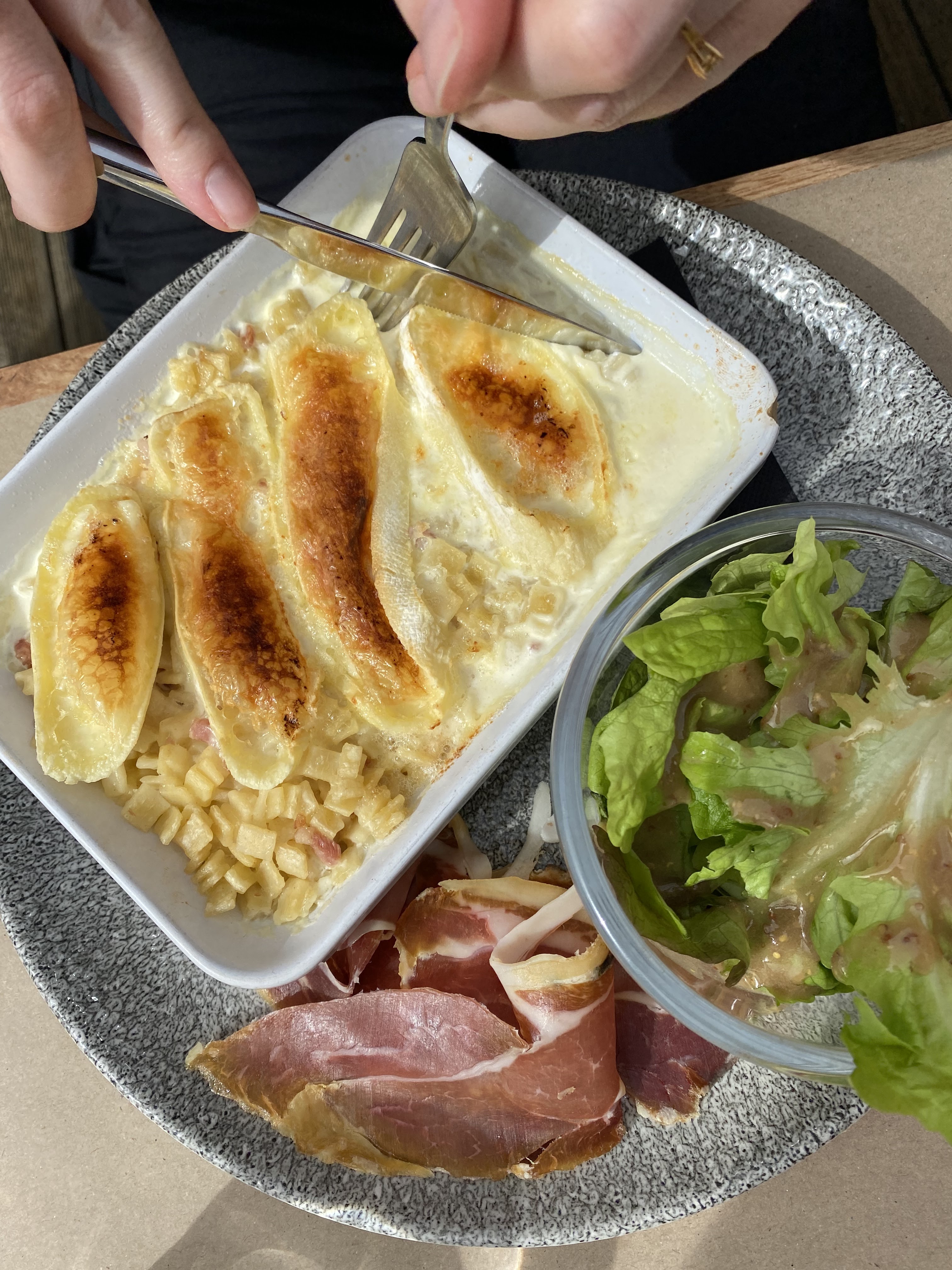 Tout était parfait !! Les linguines au beaufort étaient à tomber par terre et le service était impeccable !! Les raclettes et fondues était servies avec une très bonne portion de charcuterie, ce qui me manquer dans d’autres restaurants de la station. Je recommande fortement !!
