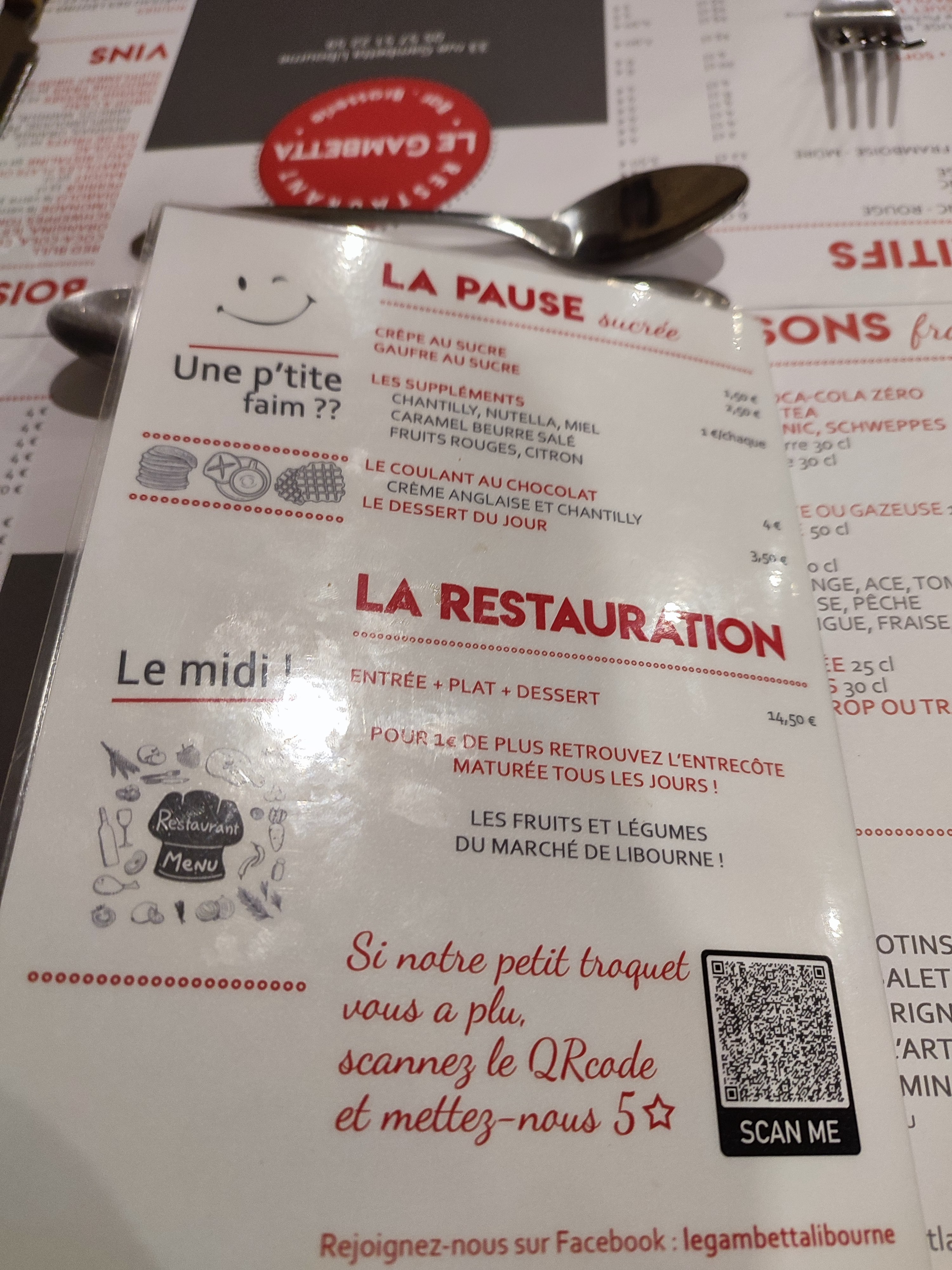 On mange très bien avec un bon rapport qualité/prix (menu à 12,90€, entrée,plat,dessert). Le serveur est top et pro. La carte change tous les jours. Possibilité de manger en terrasse qui l'été est rafraichie pour notre plus grand confort. Service rapide, je recommande si vous passez par Libourne et souhaitez manger rapidement et bien.